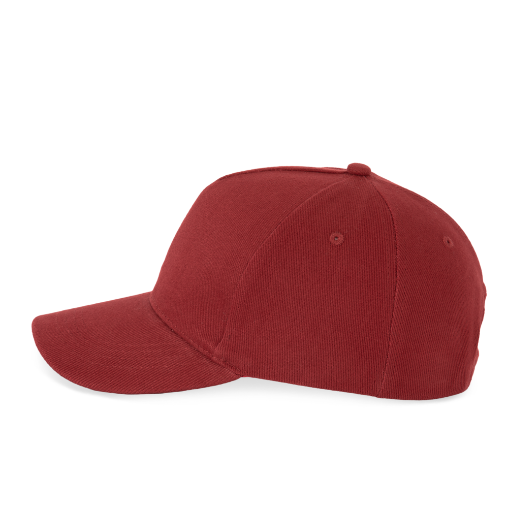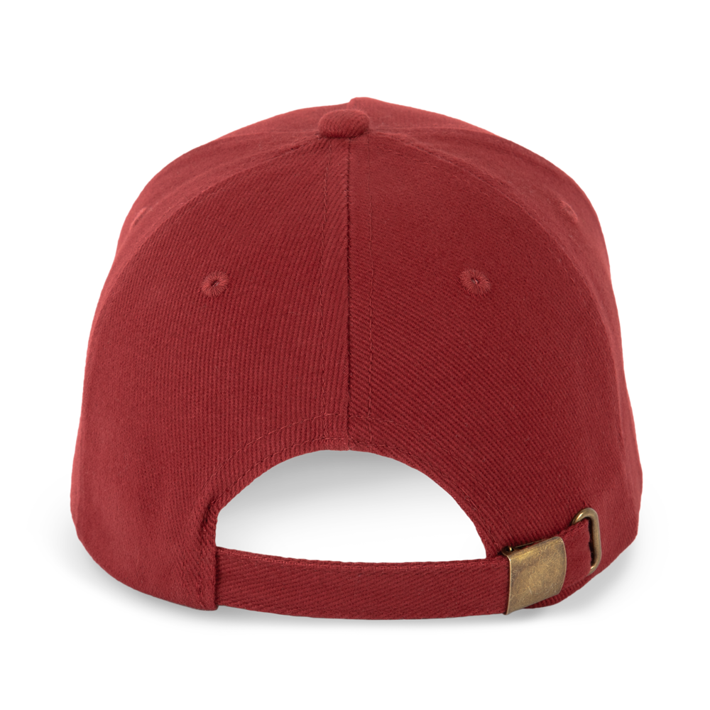 100% cotone. Cotone pettinato spesso. Cappellino 5 pannelli Oeko-Tex. Chiusura sul retro con fibbia metallica.