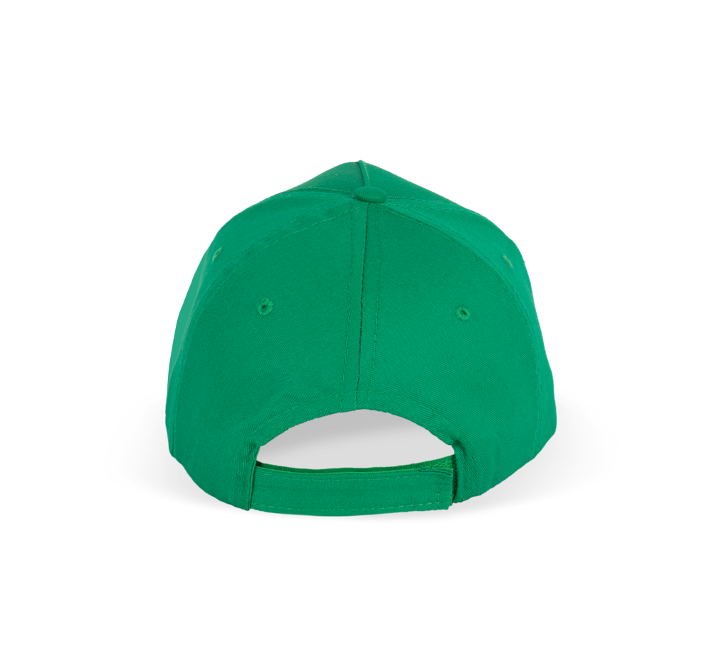 100% Cotone leggero spazzolato. Cappellino 5 pannelli laminati. Fascia anti-sudore in cotone. Chiusura regolabile con Velcro.