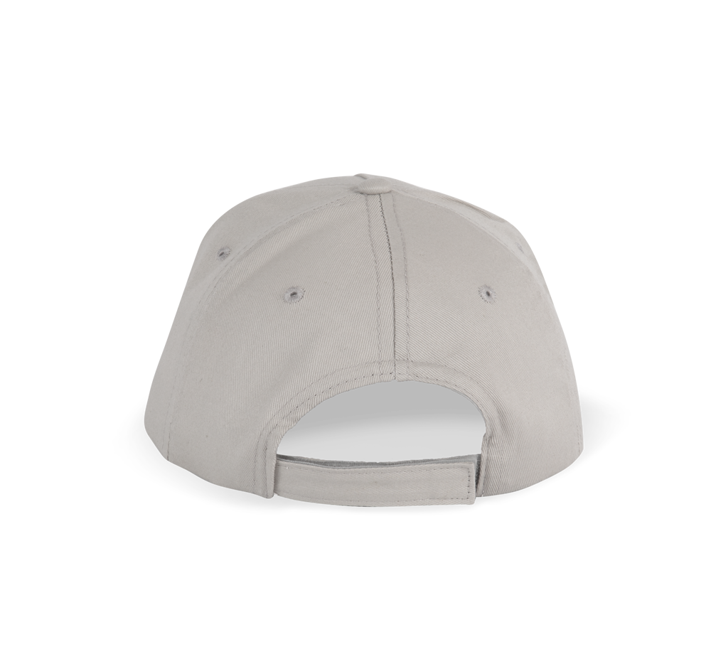 100% Cotone leggero spazzolato. Cappellino 5 pannelli laminati. Fascia anti-sudore in cotone. Chiusura regolabile con Velcro.