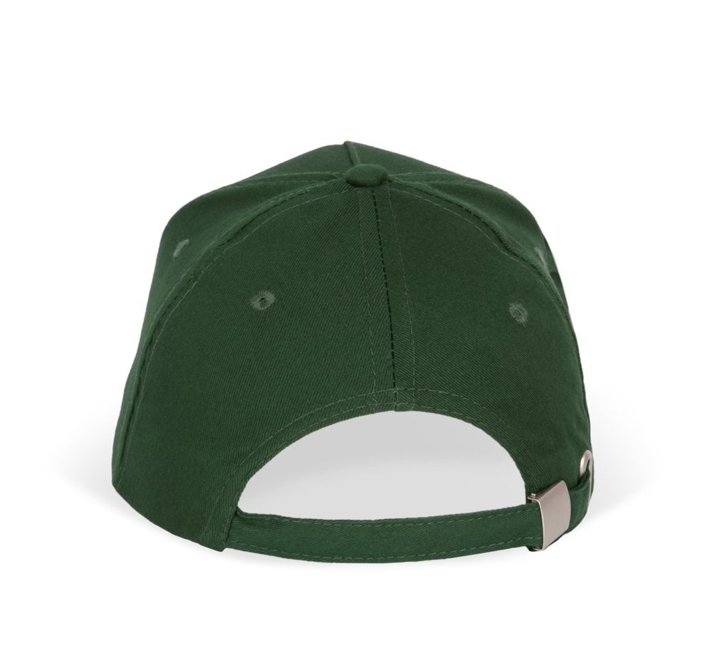 100% Cotone Twill pettinato. Cappellino 5 pannelli laminati. Fascia anti-sudore in cotone. Chiusura regolabile con fibbia in metallo.