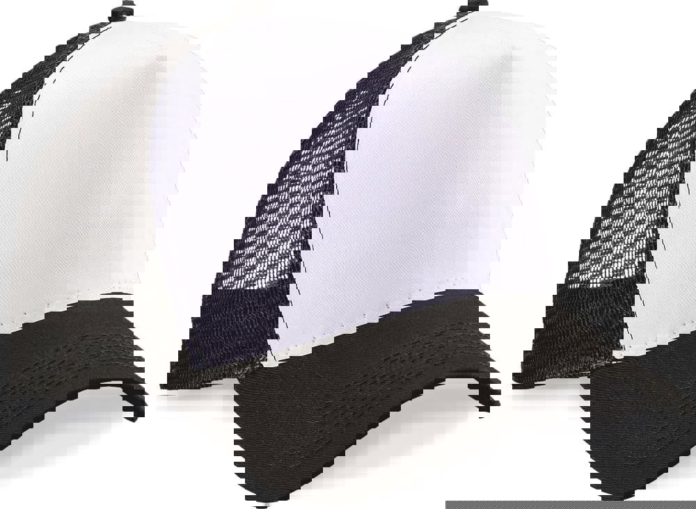 Pannello frontale e visiera in 100% cotone. Pannelli posteriori a rete in 100% poliestere. Design a 5 pannelli. Visiera pre-curvata. Regolatore stile retrò Snapback