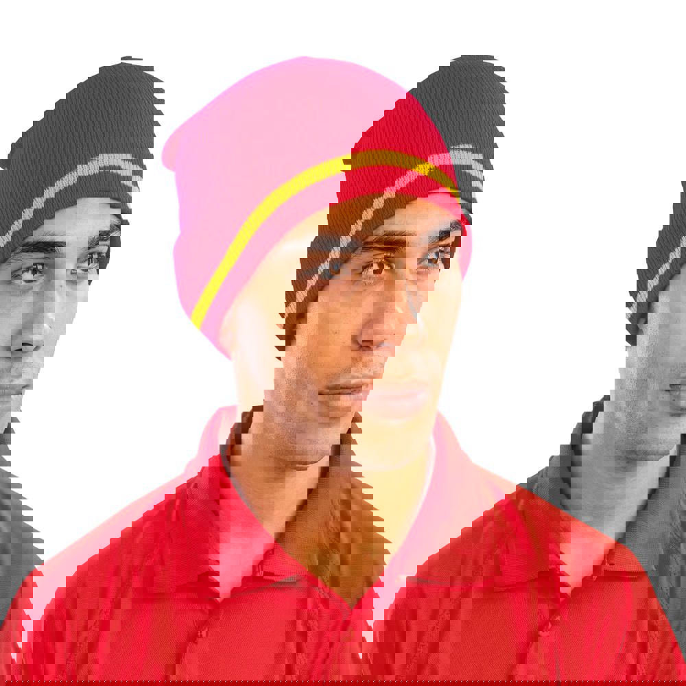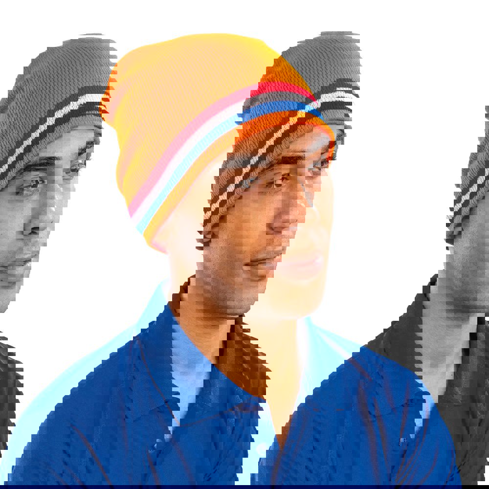 100% acrilico. Maglia spessa a righe all'esterno e in tinta unita all'interno. Estremamente caldo. more