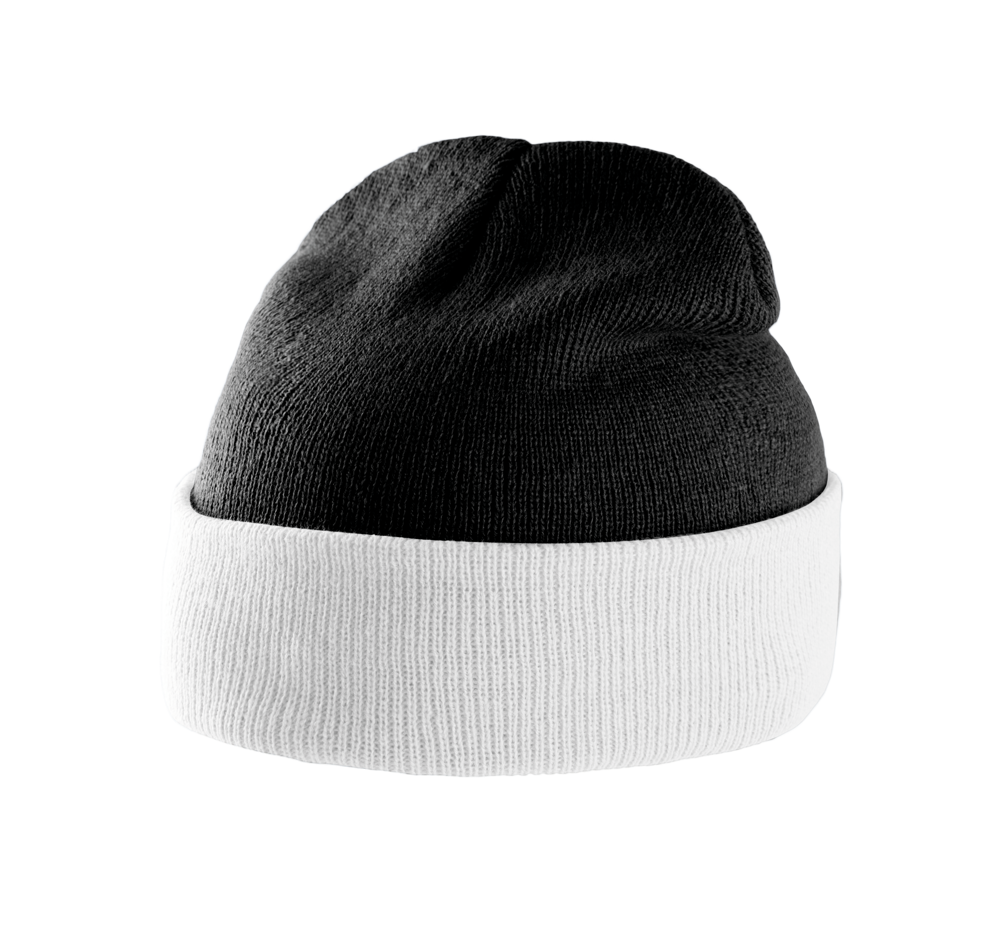 100% Acrilico. Berretto bicolore, adatto per squadre sportive.