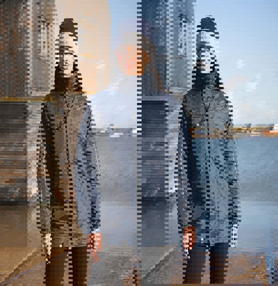 100% poliestere. GIACCA ESTERNA: cappuccio impermeabile a scomparsa con coulisse. Doppie cuciture termosaldate. Patta protettiva con chiusura a strappo sul davanti. Fasce riflettenti sulle maniche. Tasca con zip sul petto. Zip a due direzioni sul davanti. Polsini elasticizzati. Tasche interne e laterali. Sistema di fissaggio della giacca interna mediante zip aggiuntiva. GIACCA SOFTSHELL INTERNA: connettori su polsini e collo. Polsini elasticizzati rifiniti. Tasca con zip anteriore. Zip sul davanti.