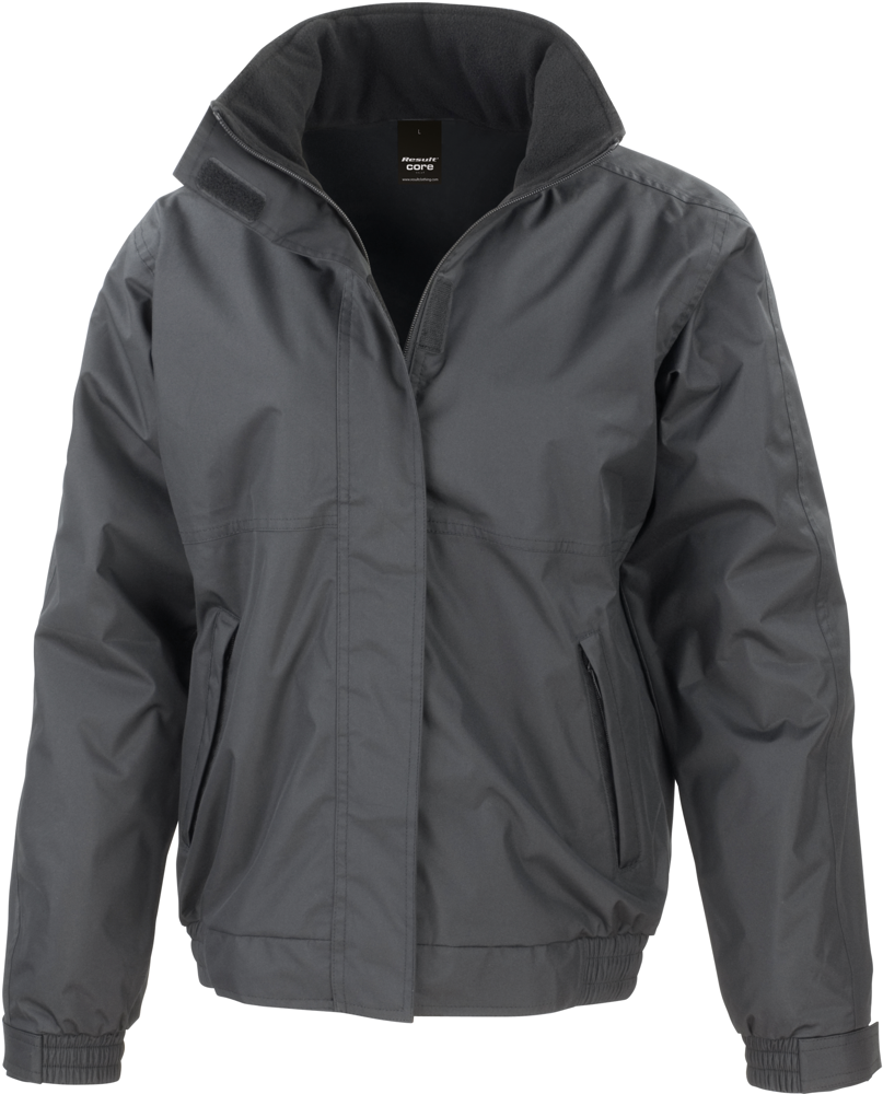 Strato esterno: 100% poliestere spalmato in poliuretano. Interno 100% poliestere imbottito. Fodera corpo 100% poliestere pile 250 g/m²; maniche 100% poliestere taffetà. Impermeabile 4.000 mm. Antivento. Cuciture termosaldate. Chiusura con zip. Cappuccio integrato nel collo. Due tasche laterali. Tasca interna sul petto a destra. Polsini regolabili. Girovita elasticizzato. Zip per personalizzazione su cucitura laterale sul petto, a sinistra.