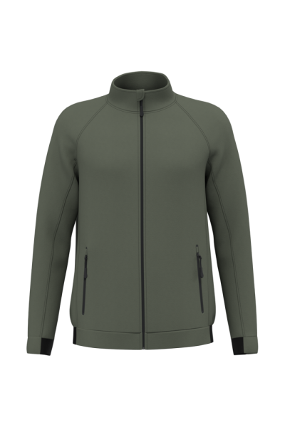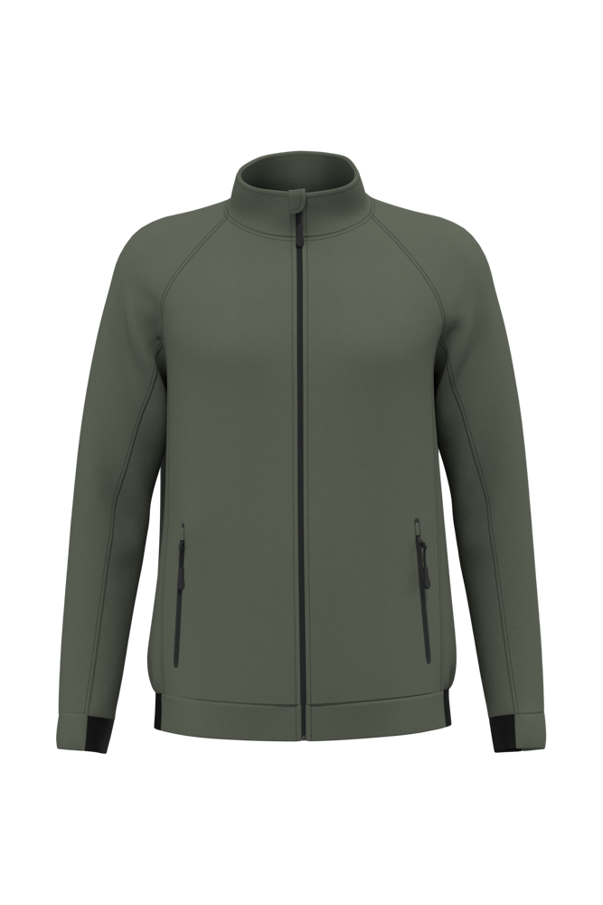 94% poliestere / 6% elastan (79% poliestere / 15% viscosa / 6% elastan per il colore melange). Materiale ultra comodo. Chiusura con zip. 2 tasche con zip sul davanti e finitura termosaldata. Fondo manica e fondo capo stretti con una parte elasticizzata Black su tutti i colori e Dark Grey sull'erica di Ash Heather (anche le chiusure). Ideale da indossare con i pantaloni tuta PA1008 per uno stile totalmente "urban apparel".