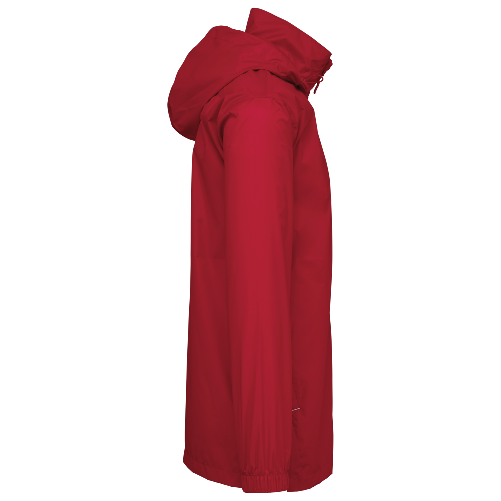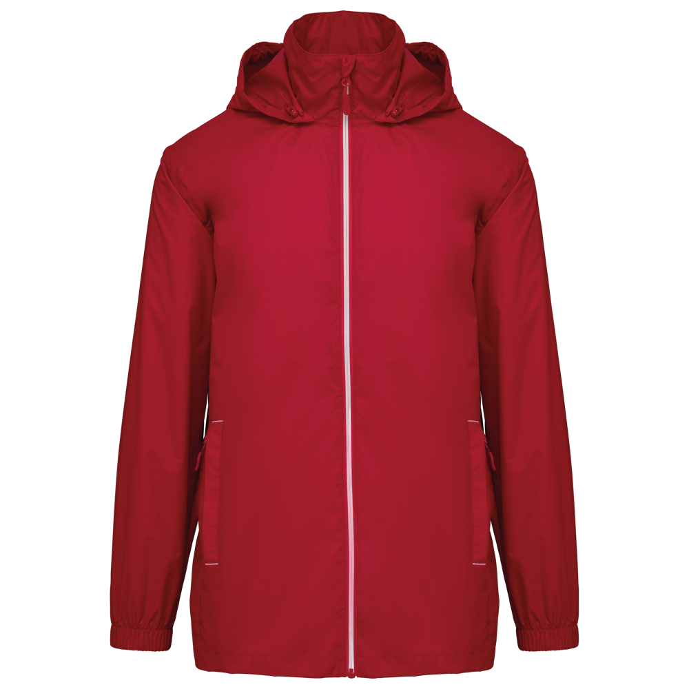 100% poliestere opaco 210T rivestito in PU. Tessuto impermeabile 1500 mm. Cappuccio e cuciture termosaldate sulle spalle impermeabili. 2 tasche laterali con cerniera e tiretto. 2 tasche interne. Chiusura frontale con cerniera a contrasto. Cappuccio regolabile con stopper al collo e pattina velcro a strappo. Fondo manica elasticizzato. Etichetta del marchio staccabile.