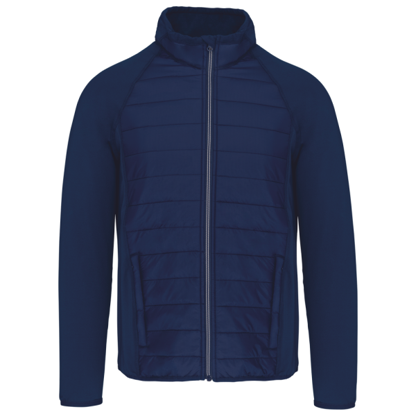 Esterno: corpo 100% poliammide ripstop, maniche e schiena 90% poliestere / 10% elastan (Marl grey/ Sporty navy: 100% polyester). Imbottitura interna 100% poliestere. Materiale ultra comodo con trattamento idrorepellente. 2 tasche con zip sul davanti. Zip a contrasto Nastro elasticizzato sul collo, fondo manica e fondo capo.