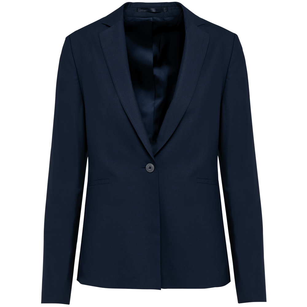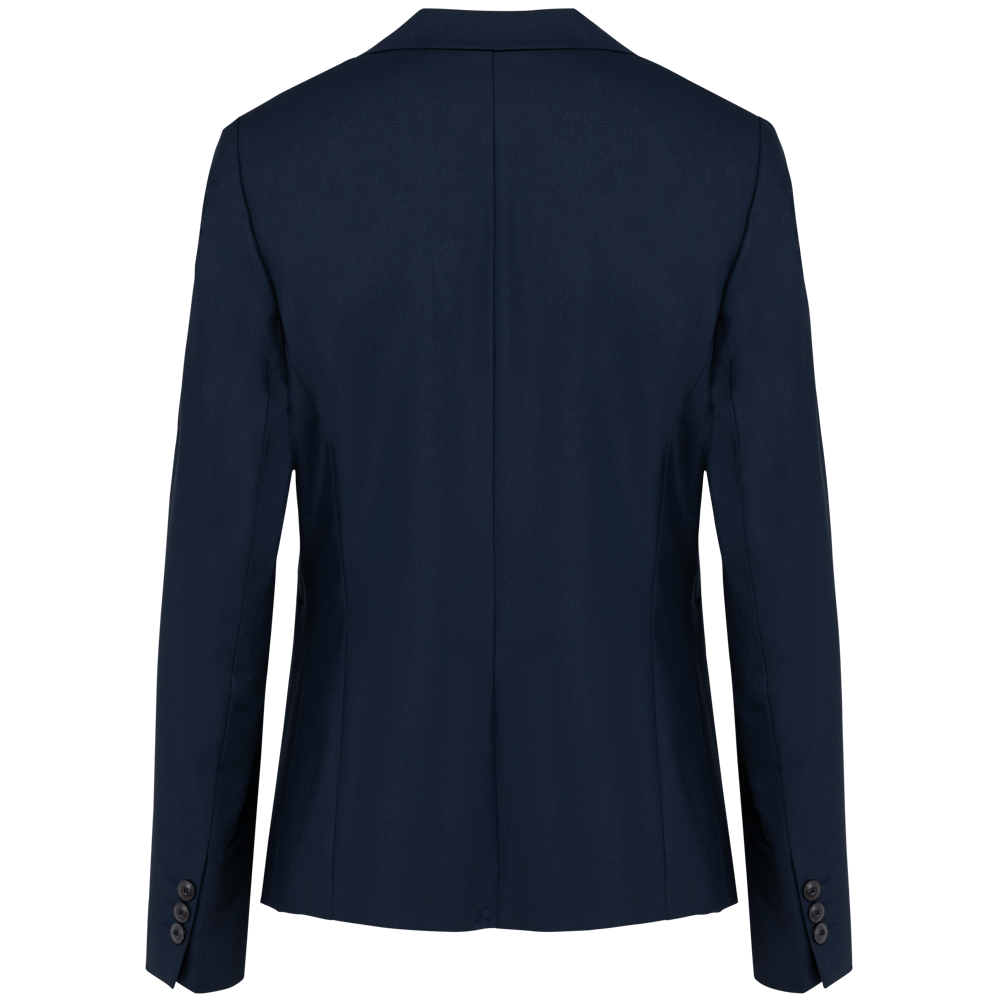 50% poliestere / 23% viscosa / 22% lana / 5% elastan. Fodera 100% twill poliestere tono su tono con pieghe comfort. Giacca chiusa da 1 bottone. 2 tasche a filetto sul davanti. Una tasca a filetto interna sul lato cuore. Fondo manica con 3 bottoni. 1 spacchetto comfort nel fondo capo posteriore. Nessuna etichetta con il nome del marchio; solo una piccola etichetta con l'indicazione della taglia per semplificare la personalizzazione.