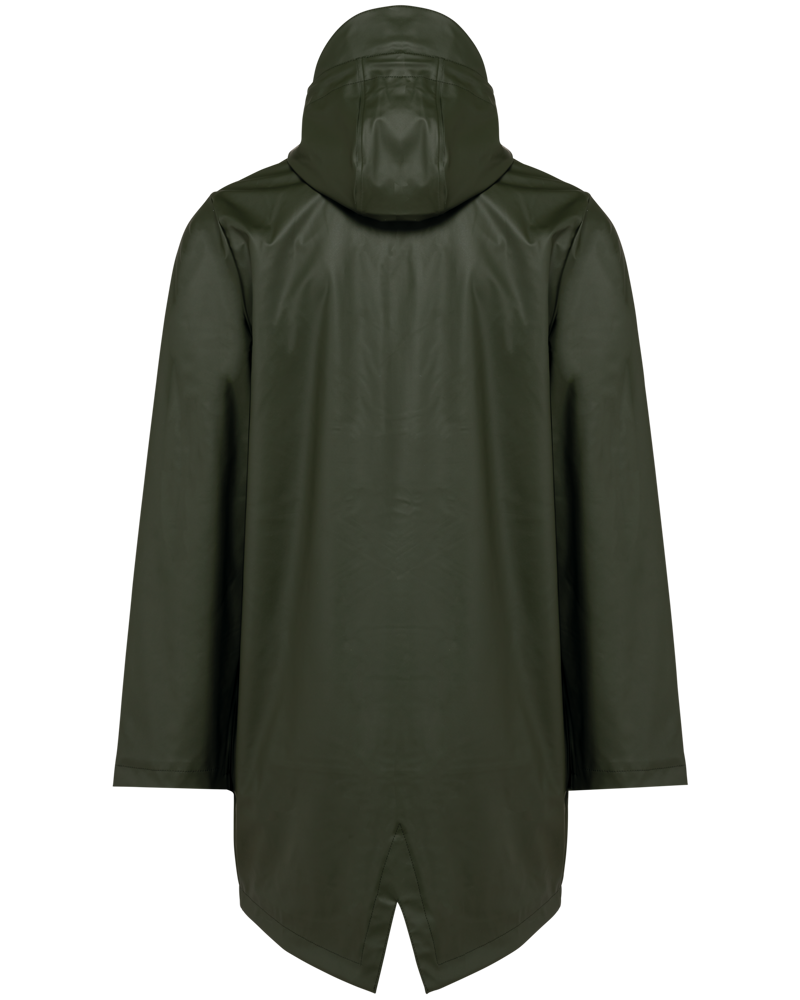 100% spalmatura in poliuretano per lo strato esterno e 100% poliestere per lo strato interno. Cuciture termonastrate. Impermeabile 5.000 mm. Fodera 100% poliestere. Cappuccio con visiera e coulisse, stopper con estremità in metallo. Zip inversa impermeabile al collo, con copertura della zip nella parte superiore. 2 tasche laterali con cerniera impermeabile e zipper nascosta. Occhielli di aerazione a livello delle ascelle. Parte posteriore più lunga, dotata di spacchetti comfort in basso. Loop all'interno del collo per appendere la giacca. Patch interna per la personalizzazione sulla parte superiore della schiena. Zip interne per la personalizzazione, a fondo capo e sul lato cuore. Nessuna etichetta con il nome del marchio; solo una piccola etichetta con l'indicazione della taglia per semplificare la personalizzazione.