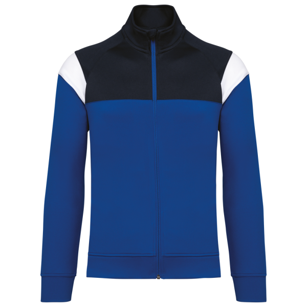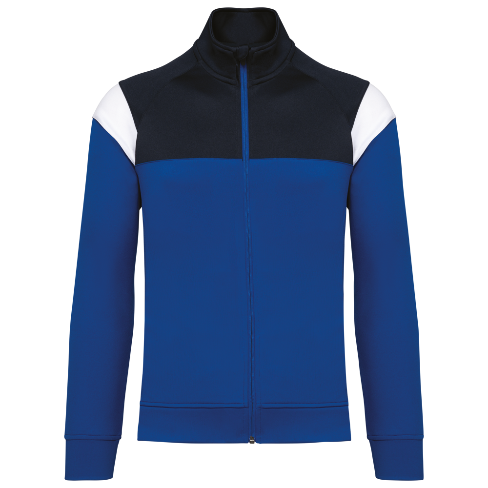 100% poliestere interlock opaco. Taglio dritto. Chiusura sul davanti con zip invertita in nylon tono su tono. Maniche raglan con inserti a contrasto sulla spalla. Profili in tessuto a contrasto su petto e spalla. 2 tasche con zip sul davanti. Inserti in tessuto strutturato su fianchi e schiena. Coprizip nella parte alta del collo per un comfort maggiore. Etichetta con il nome della marca staccabile per semplificare la personalizzazione.
