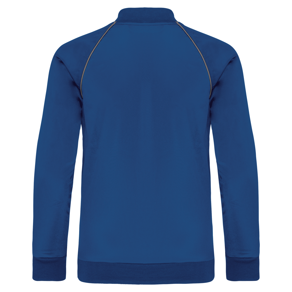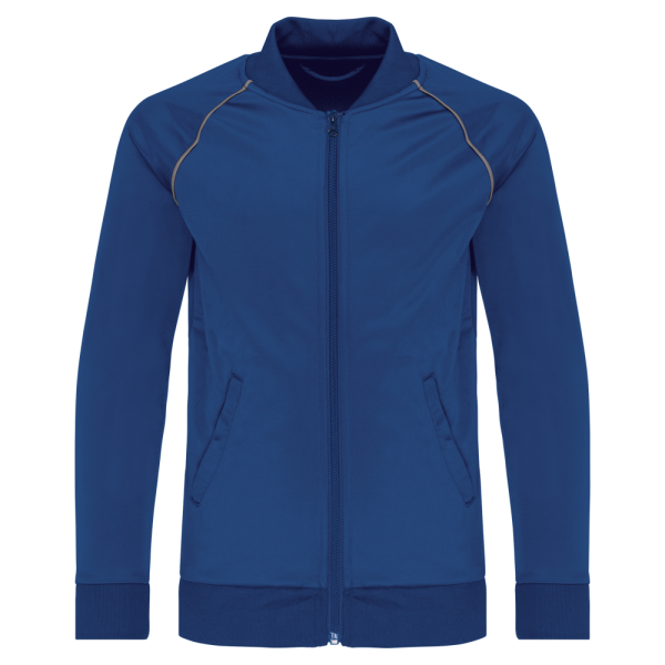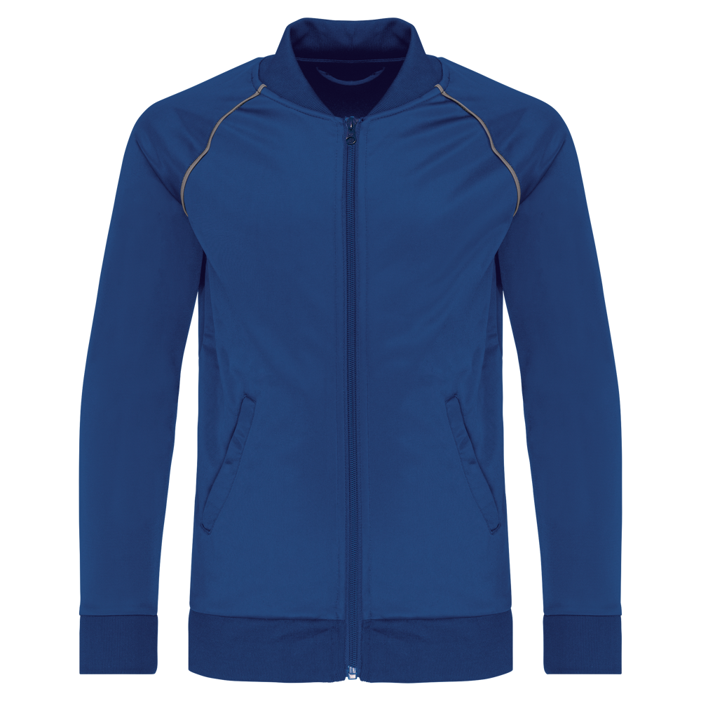 100% poliestere lavorato a maglia. Taglio dritto. Zip in nylon tono su tono. Manica raglan con colletto rigato a contrasto. Collo, fondo manica e fondo capo a costine 1x1. 2 tasche laterali con zip. Etichetta con il nome del marchio strappabile per semplificare la personalizzazione.