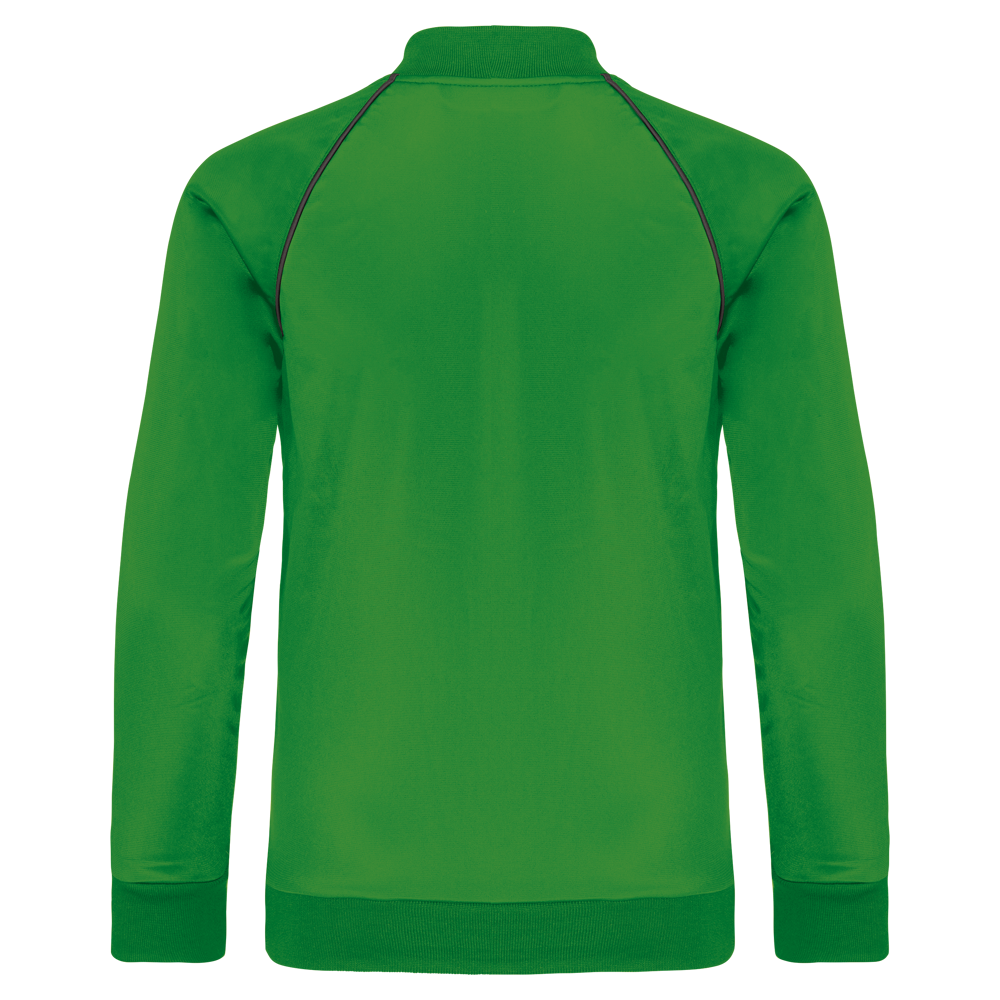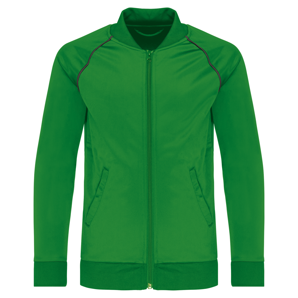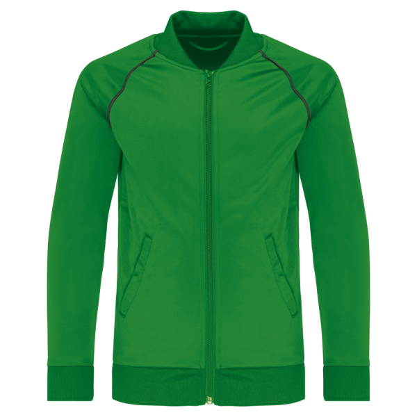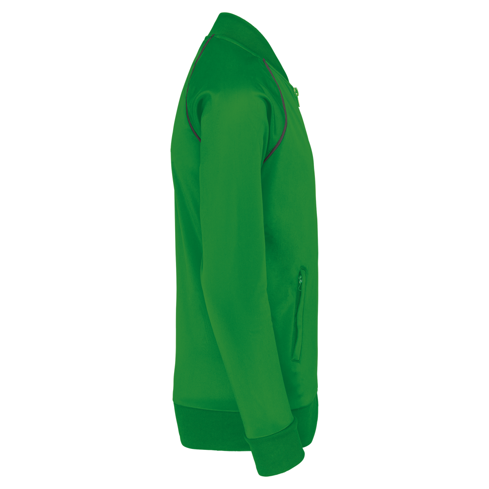 100% poliestere lavorato a maglia. Taglio dritto. Zip in nylon tono su tono. Manica raglan con colletto rigato a contrasto. Collo, fondo manica e fondo capo a costine 1x1. 2 tasche laterali con zip. Etichetta con il nome del marchio strappabile per semplificare la personalizzazione.