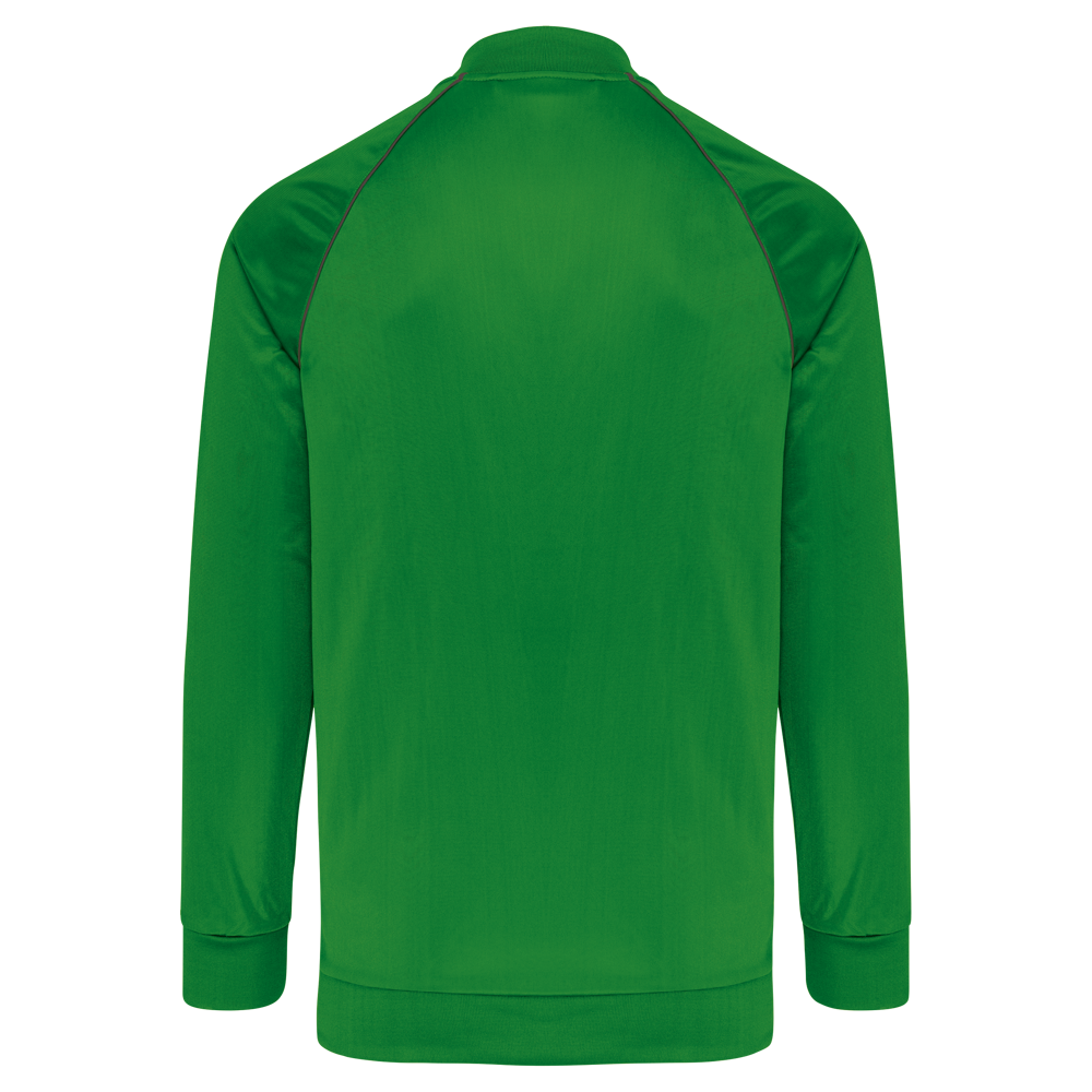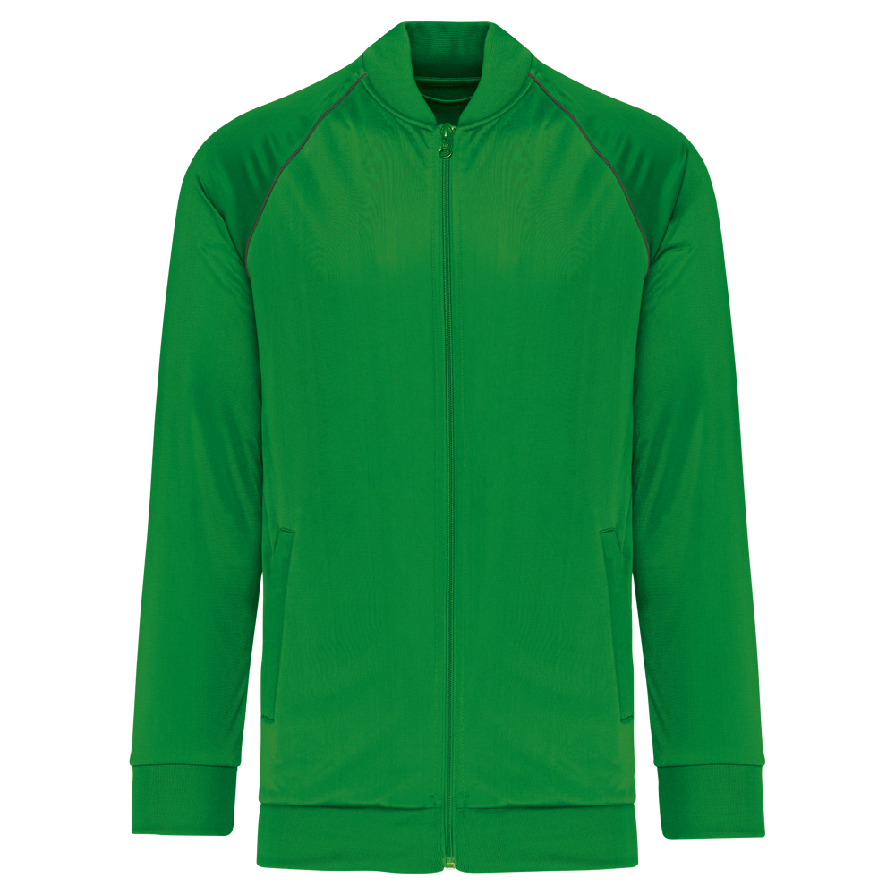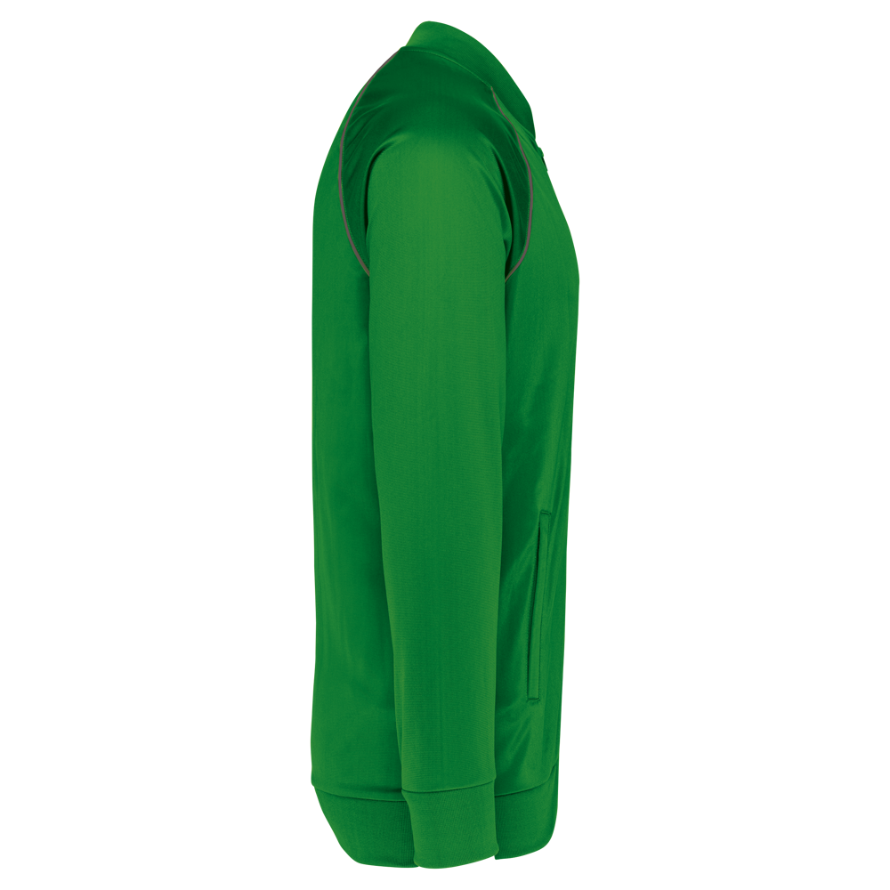100% poliestere lavorato a maglia. Taglio dritto. Zip in nylon tono su tono. Manica raglan con colletto rigato a contrasto. Collo, fondo manica e fondo capo a costine 1x1. 2 tasche laterali con zip. Etichetta con il nome del marchio staccabile per semplificare la personalizzazione.