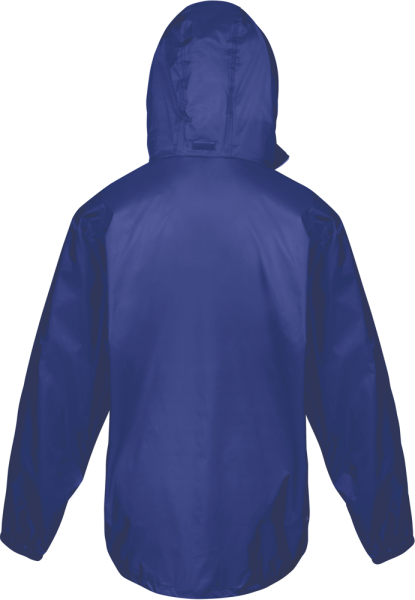 100% nylon impermeabile 3.000 mm e traspirante 3.000 gr/m/24 h. Cuciture termosaldate. Chiusura con zip a contrasto sul davanti e coulisse a fondo capo. Polsini e cappuccio elasticizzati. Tasche laterali, di cui una con zip. Etichetta stampata nel collo e asola per appenderla cucita all'interno. Ripiegabile in una sacca coordinata.