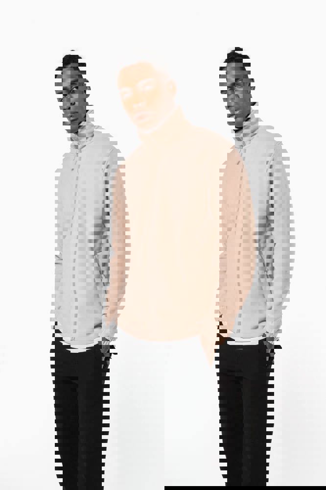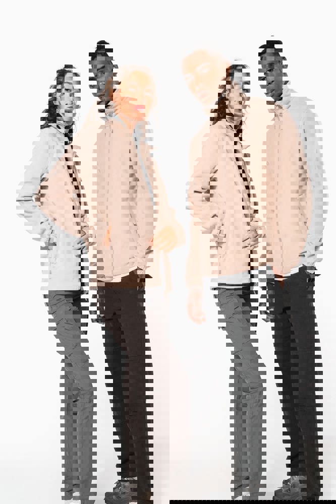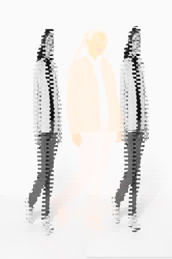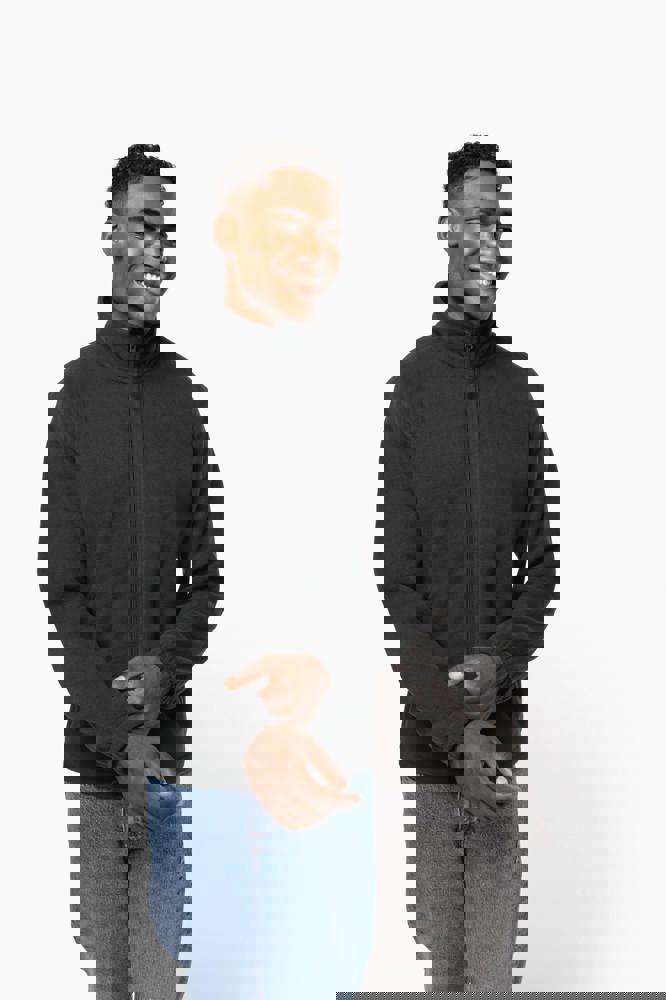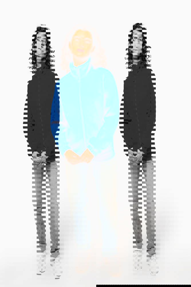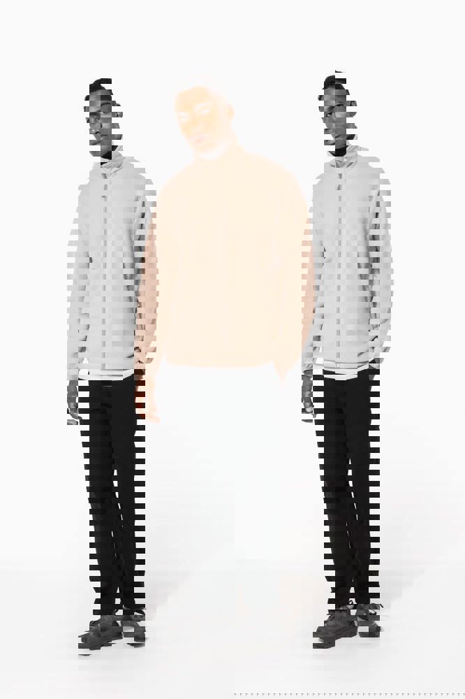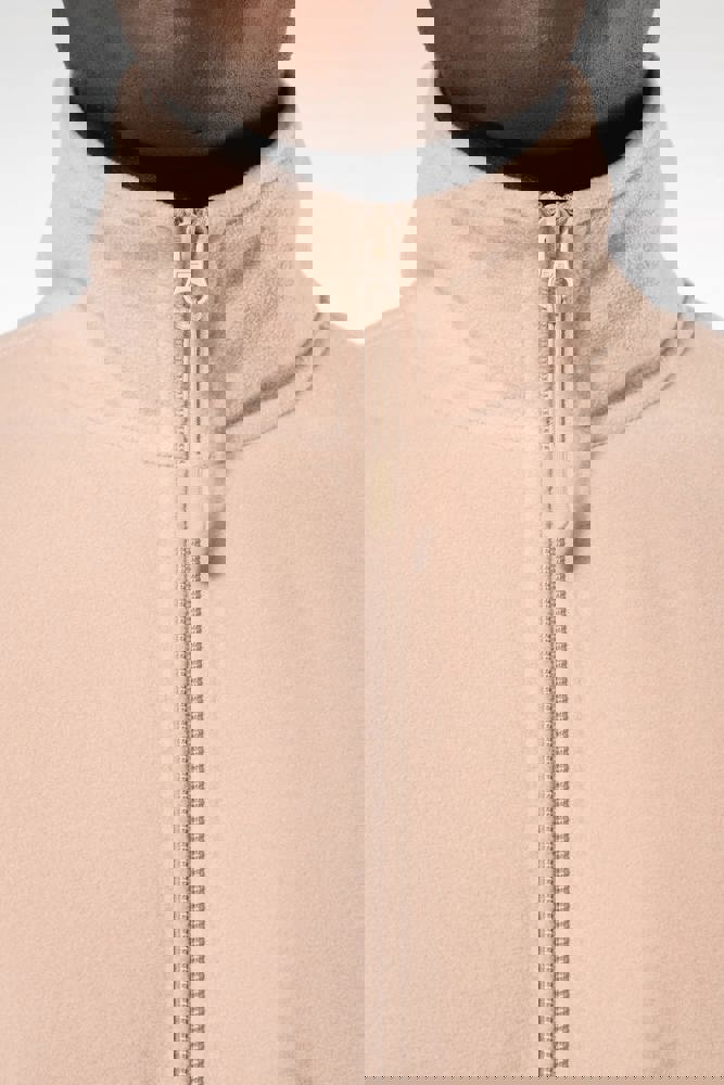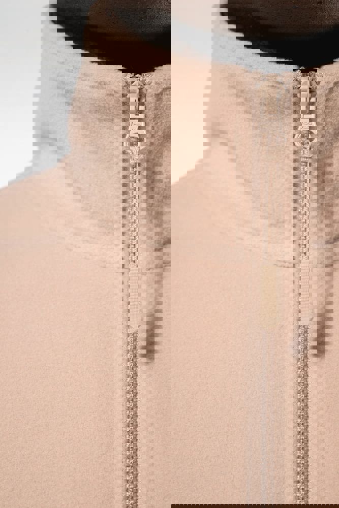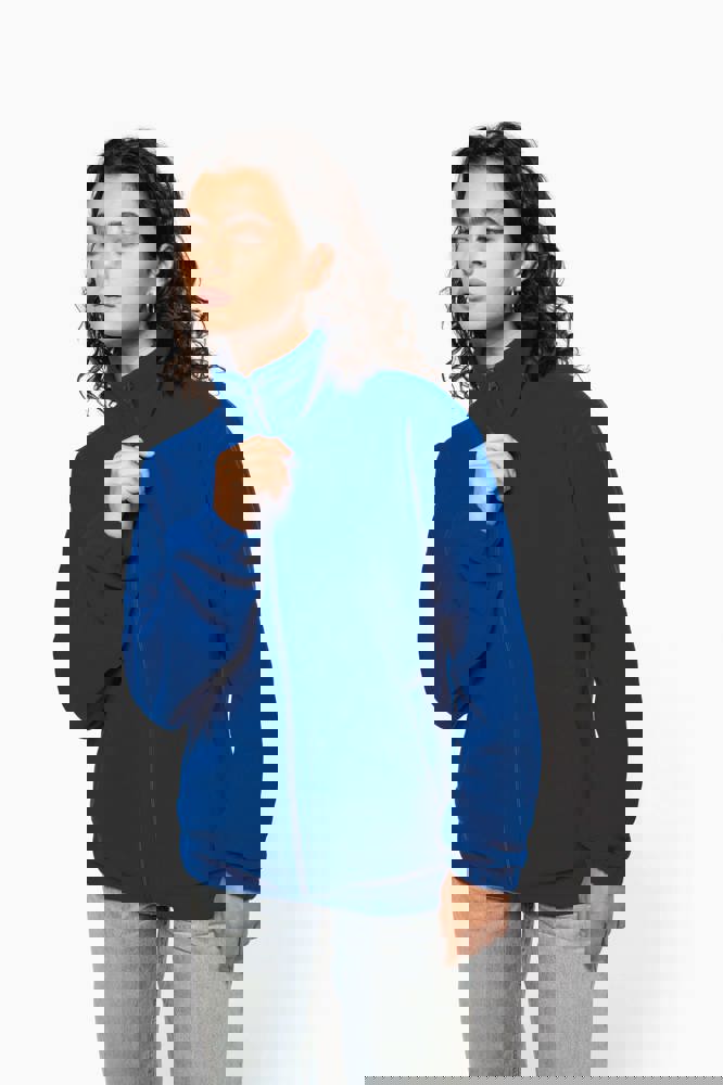 100% poliestere micropile con trattamento antipilling. 2 tasche laterali a filetto con zip. Zip. Fondo manica elasticizzato. Fondo capo regolabile con coulisse elasticizzata (fissaggio dell'elastico all'interno per renderlo invisibile).