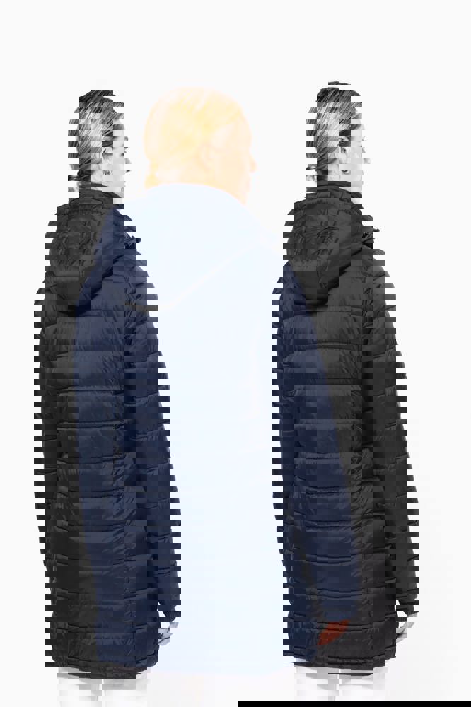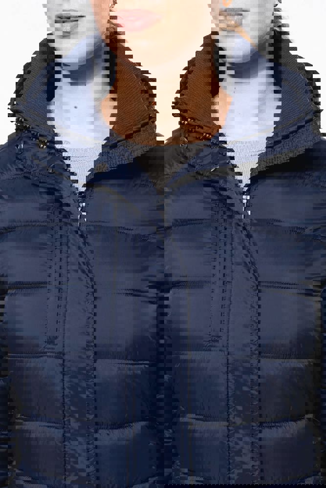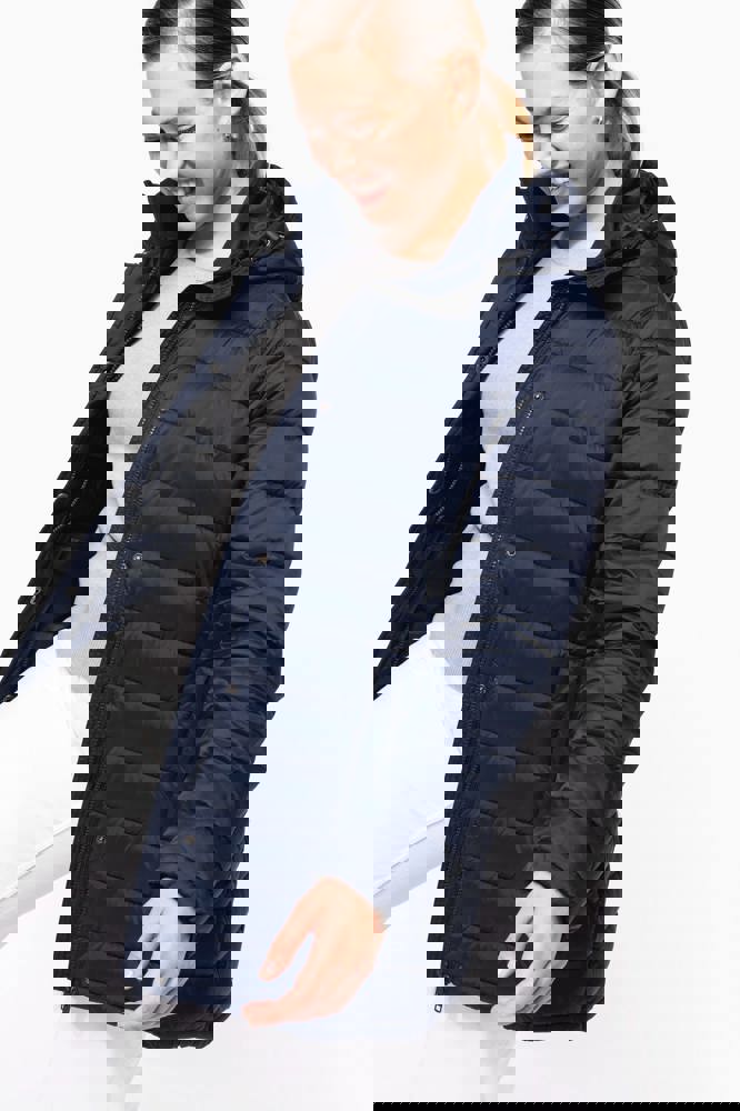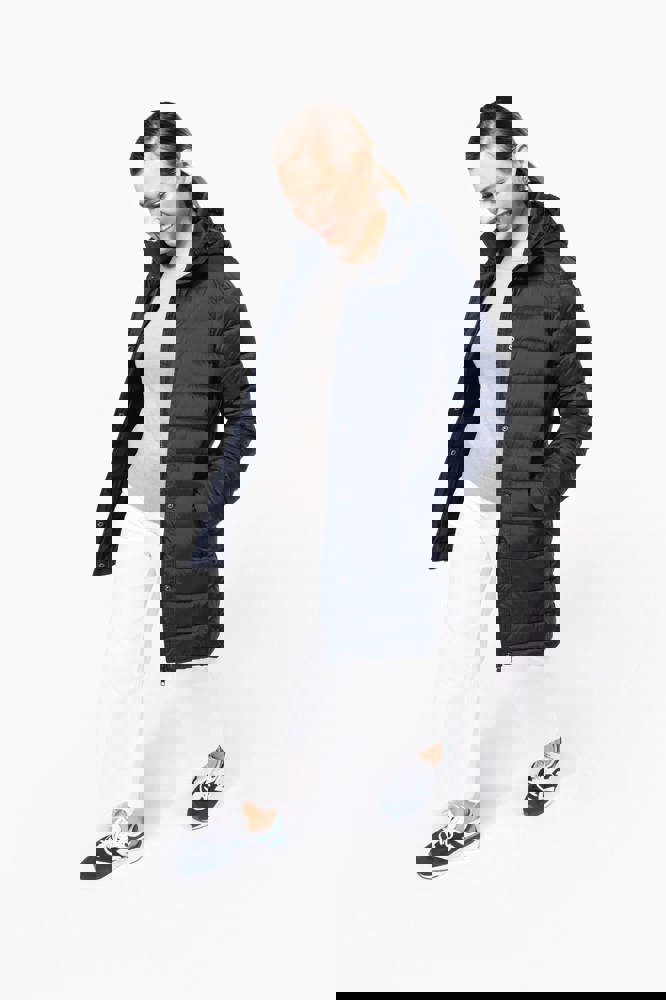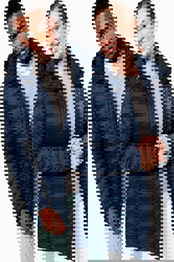 100% poliammide. Imbottitura interna in poliestere. Caldo e ultraleggero. Taglio sagomato. 2 tasche sul davanti e 1 tasca sul petto con zip, a filetto. Chiusura con zip nascosta con pattina e automatici. Interno colletto e polsini a costine. Interno cappuccio e corpo a contrasto: Convoy Grey per Black. Cappuccio e corpo tono su tono: Navy per Navy. Imbottitura iniettata: il peso può variare a seconda delle zone del capo. Il peso totale è indicativo.