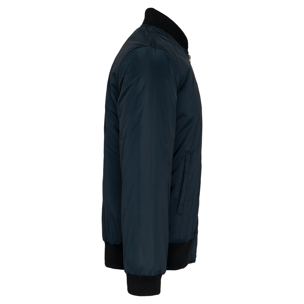 100% poliestere. Fodera imbottita 100% poliestere. Chiusura con zip. 2 tasche a filetto sul davanti. Tasca applicata porta-penna con zip sulla manica sinistra. Tasca a filetto interna. Collo, fondo manica e fondo capo a costine 2x2. 1 zip lato cuore e 1 zip a fondo capo per apertura e personalizzazione.