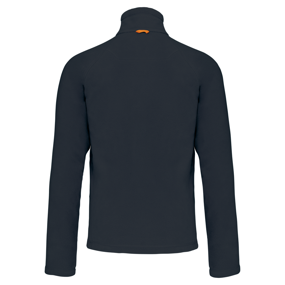 100% poliestere micropile con trattamento anti-pilling. Maniche raglan. Chiusura con zip. 2 tasche con zip davanti. 2 tasche interne. Coulisse e rifiniture in contrasto.
