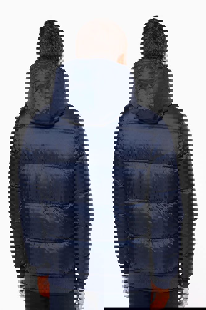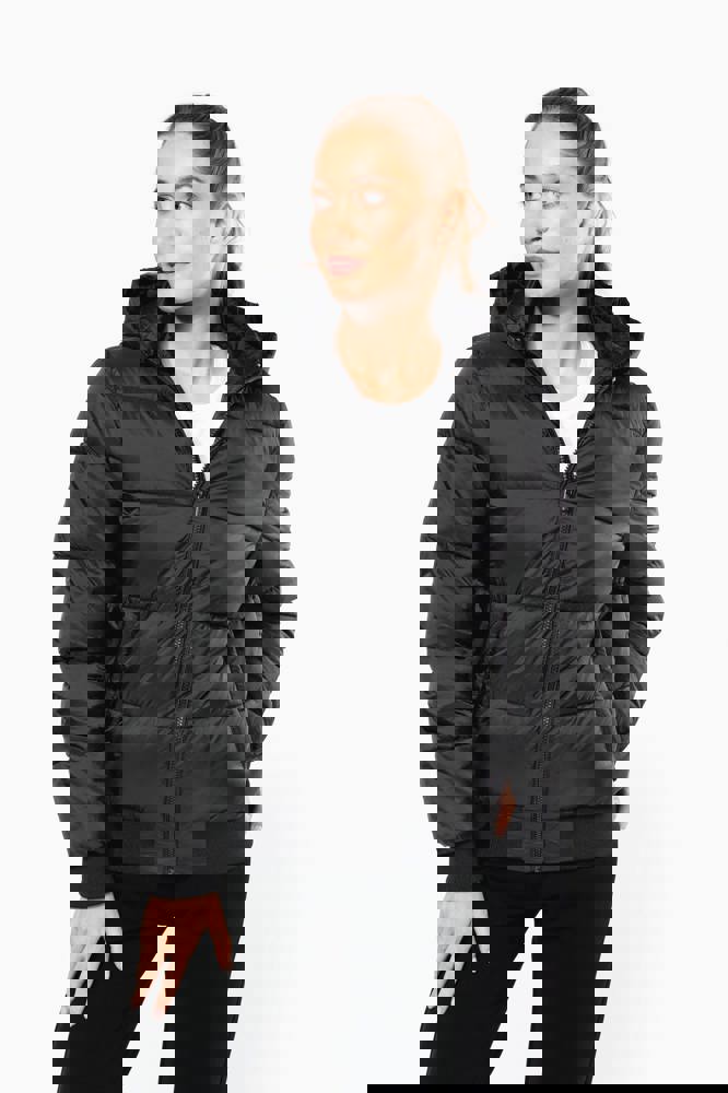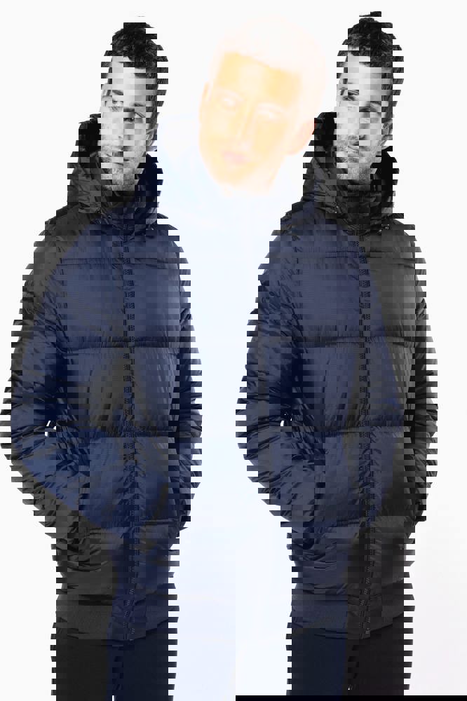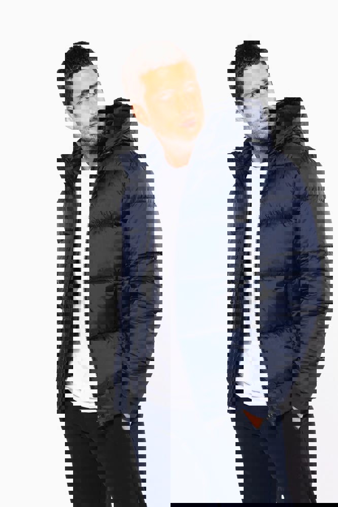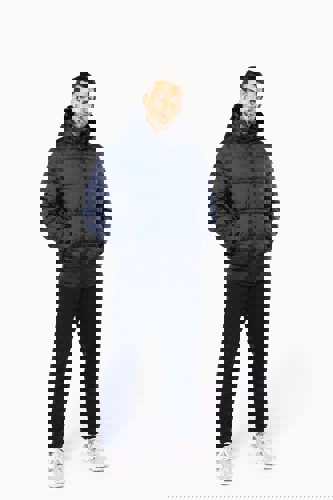 100% poliammide riciclata ripstop 380T. Tessuto idrorepellente. Imbottitura interna 100% poliestere riciclato. Fodera 100% poliammide riciclata. Taglio straight. 2 tasche laterali a filetto con zip. 1 tasca applicata interna con chiusura a strappo. Zip frontale. Collo alto con cappuccio a 3 pannelli foderato, imbottito e regolabile tramite uno stopper. Fondo manica e fondo capo a costine. Zip invisibile all'interno del lato cuore e a fondo capo per apertura e personalizzazione. Imbottitura iniettata: il peso può variare a seconda delle zone del capo. Il peso totale è indicativo.