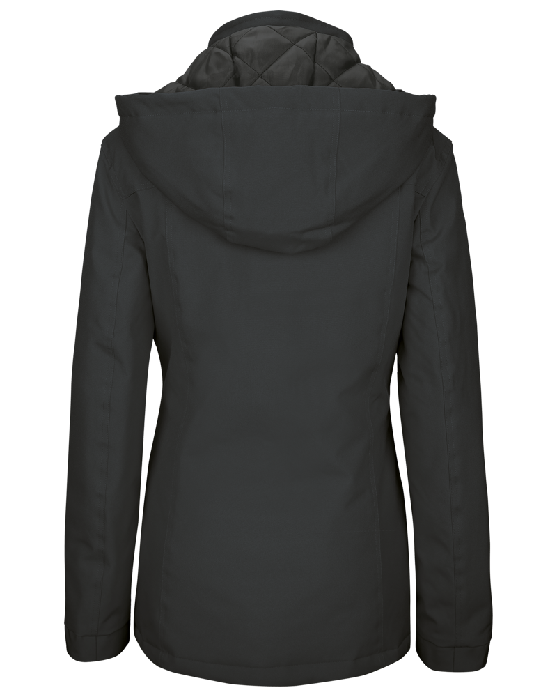 Esterno: 100% poliestere Oxford. Interno: imbottitura in poliestere. Chiusura con zip e pattina con automatici nascosti. 2 tasche esterne con zip. 1 tasca interna. Cappuccio staccabile. Collo foderato in pile. Zip di accesso per facilitare la personalizzazione.