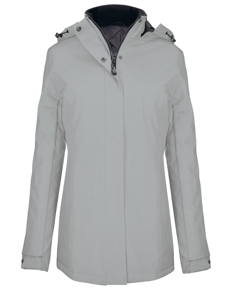Esterno: 100% poliestere Oxford. Interno: imbottitura in poliestere. Chiusura con zip e pattina con automatici nascosti. 2 tasche esterne con zip. 1 tasca interna. Cappuccio staccabile. Collo foderato in pile. Zip di accesso per facilitare la personalizzazione.