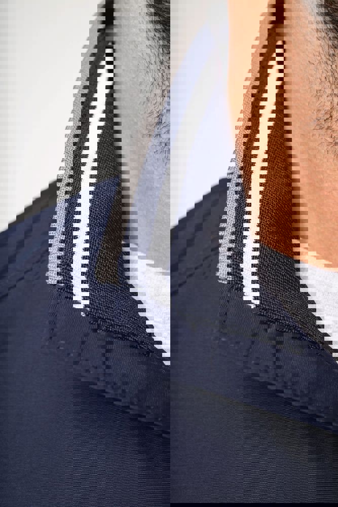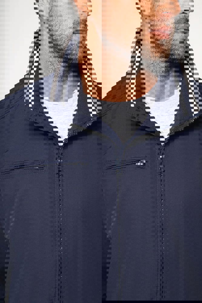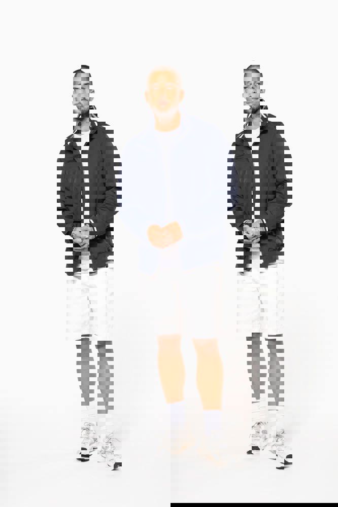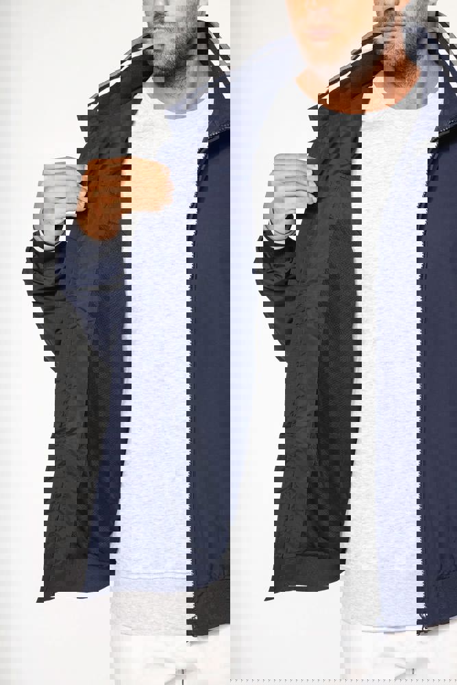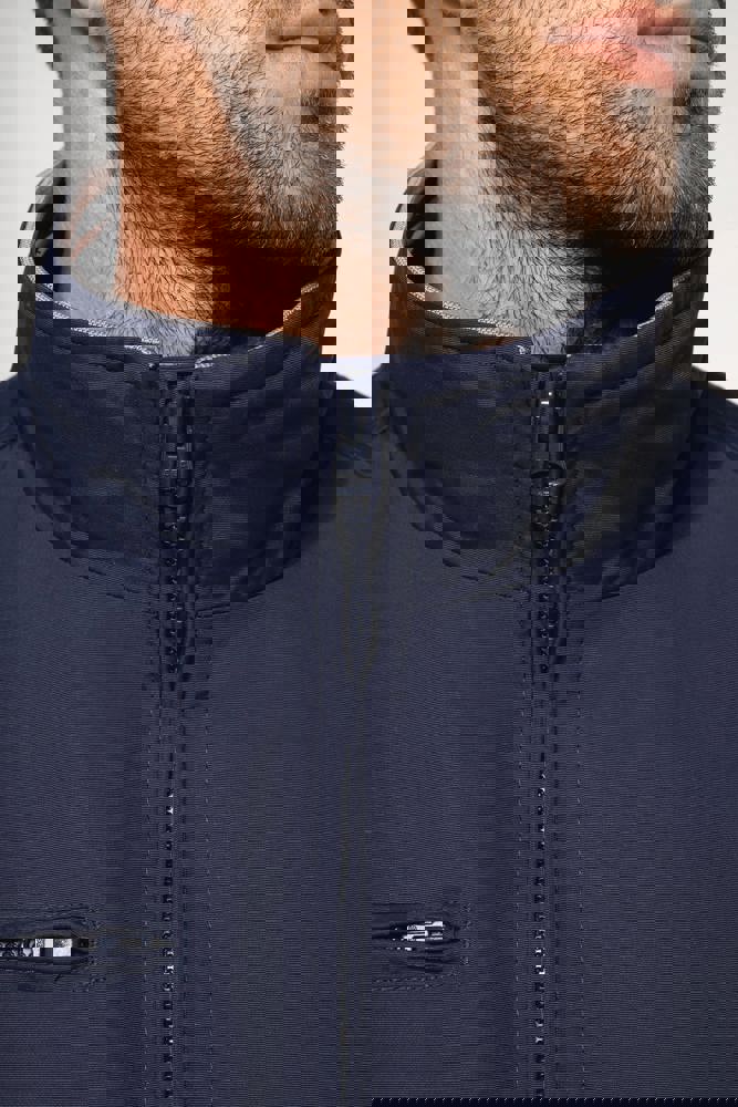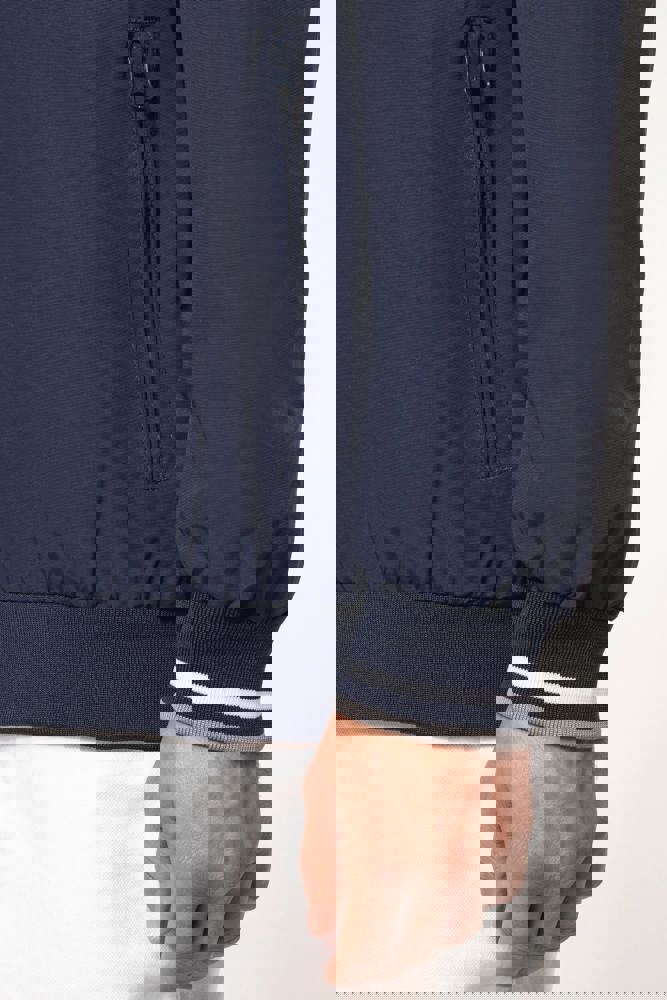 100% Poliammide Taslon Ottoman. Fodera in rete 100% Poliestere. Tessuto resistente. 2 tasche con zip sul davanti. 1 tasca con zip sul petto. 1 tasca interna. Interno collo e polsini a costine con strisce in contrasto di colore. Fodera in rete con accesso zip per facilitare la personalizzazione. Girovita in costina.