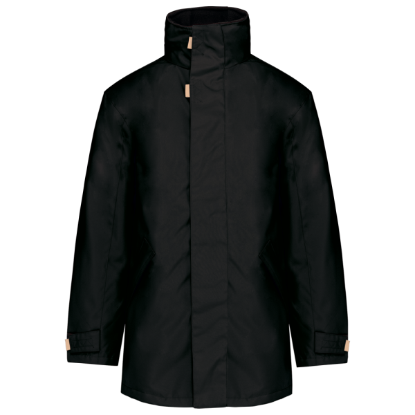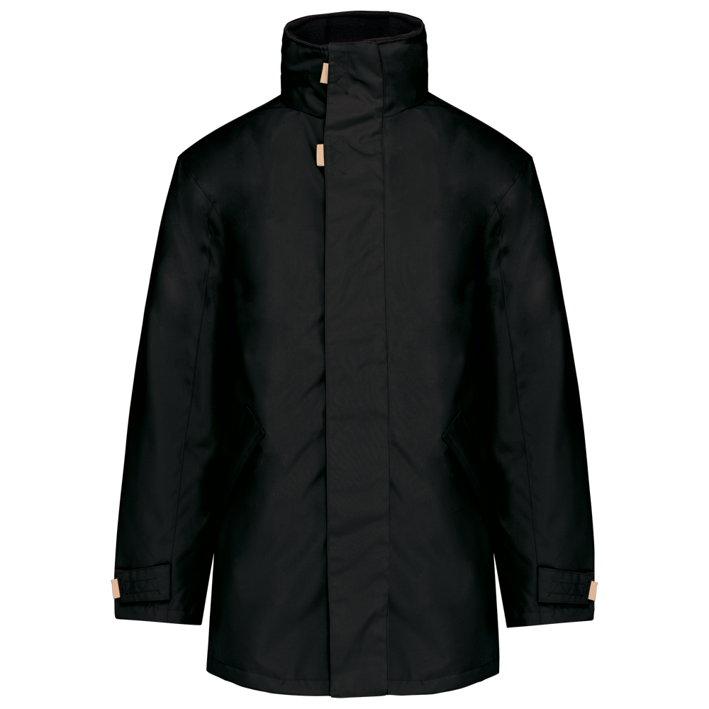 Giaccone Parka. Esterno: 100% Poliestere Oxford. Interno: Poliestere e imbottitura. 2 tasche esterne con zip. 2 tasche interne di cui una porta-cellulare. Cappuccio a scomparsa. Interno collo in Pile. Zip interna per facilitare la personalizzazione.