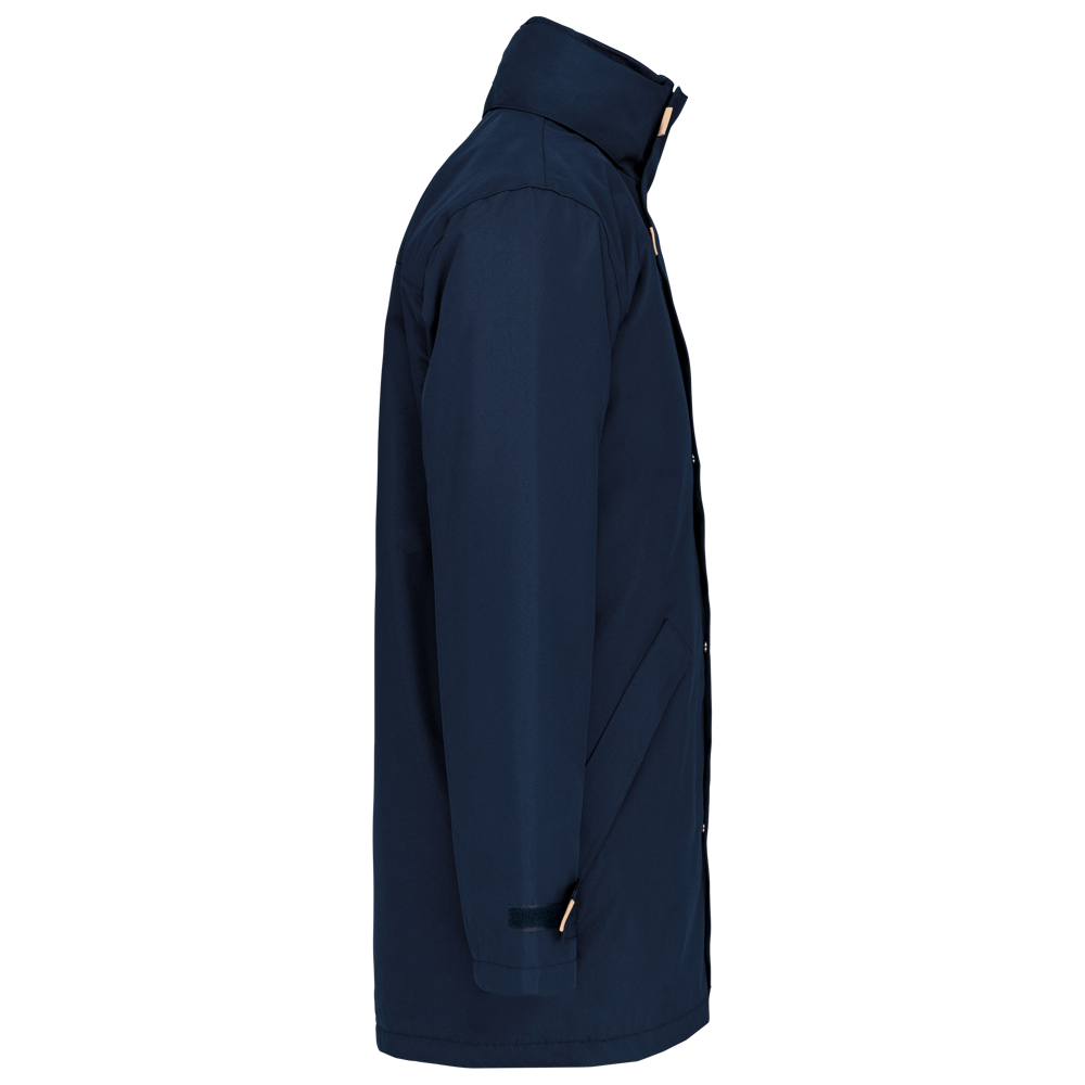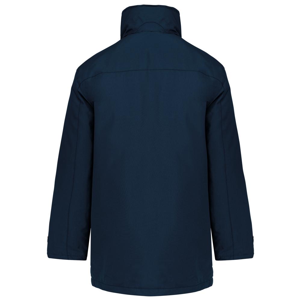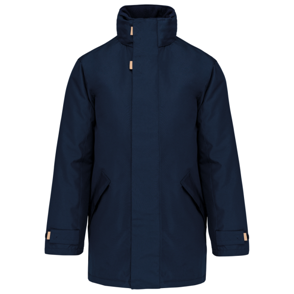 Giaccone Parka. Esterno: 100% Poliestere Oxford. Interno: Poliestere e imbottitura. 2 tasche esterne con zip. 2 tasche interne di cui una porta-cellulare. Cappuccio a scomparsa. Interno collo in Pile. Zip interna per facilitare la personalizzazione.
