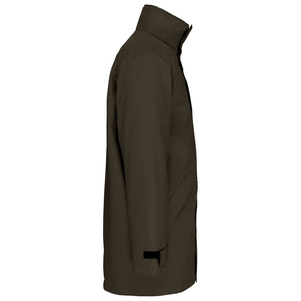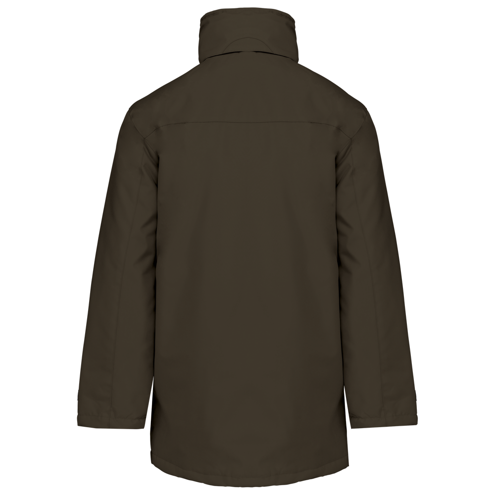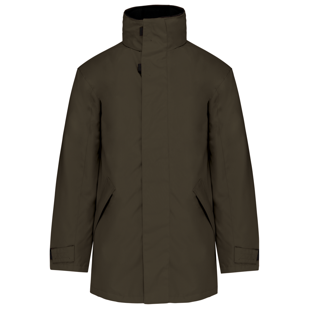 Giaccone Parka. Esterno: 100% Poliestere Oxford. Interno: Poliestere e imbottitura. 2 tasche esterne con zip. 2 tasche interne di cui una porta-cellulare. Cappuccio a scomparsa. Interno collo in Pile. Zip interna per facilitare la personalizzazione.