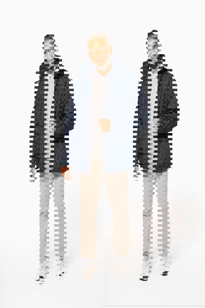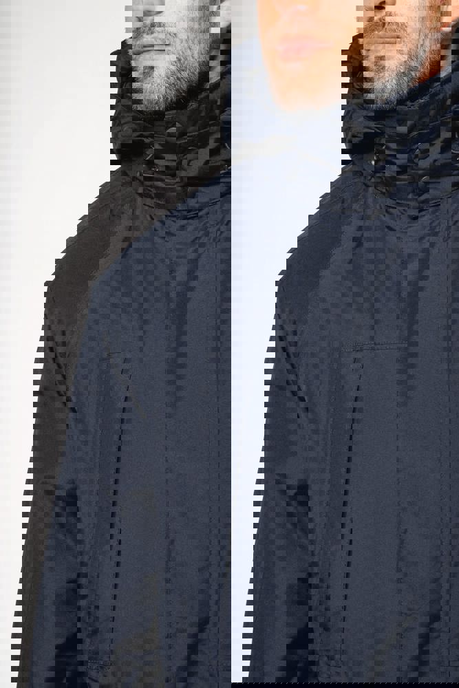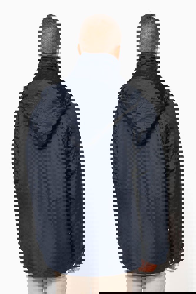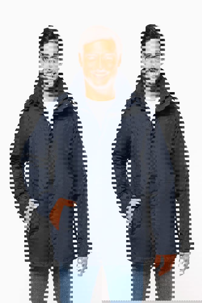 Parka 3 in 1: 100% Poliestere con rivestimento in PVC. Cuciture termosaldate impermeabili. Fodera interna in rete 100% Poliestere, maniche 100% Poliestere. Chiusura con zip e bottoni automatici. Interno collo in Pile. 4 tasche davanti con pattine e zip. Polsini regolabili con Velcro. Cappuccio staccabile con bottoni automatici e stopper. Zip interna per facilitare la personalizzazione. Giacca in Pile: Micropile 100% Poliestere. Maniche foderate in 100% Poliestere per facilitare il passaggio delle braccia. Chiusura con zip. 2 tasche laterali. Giacca in pile rimovibile collegata al parka tramite zip.