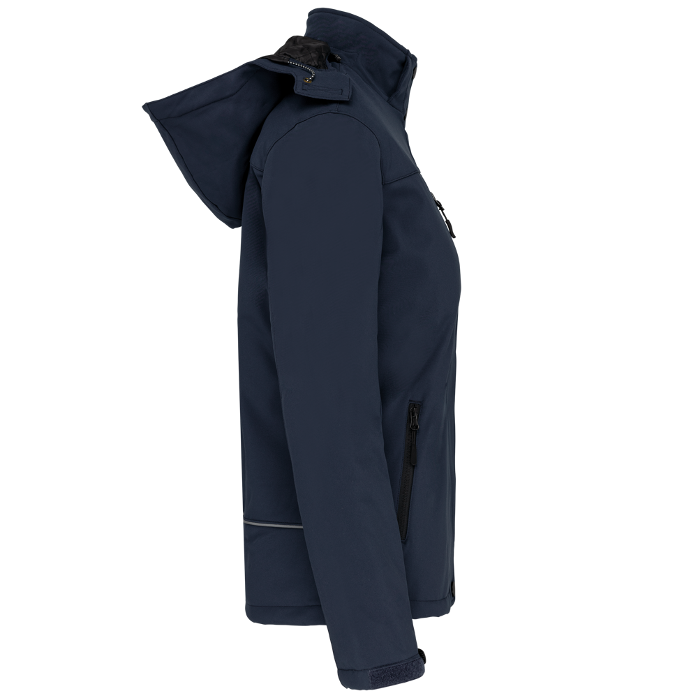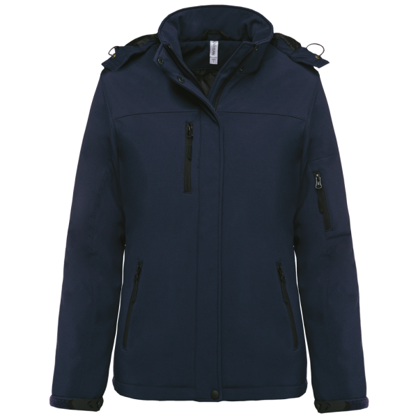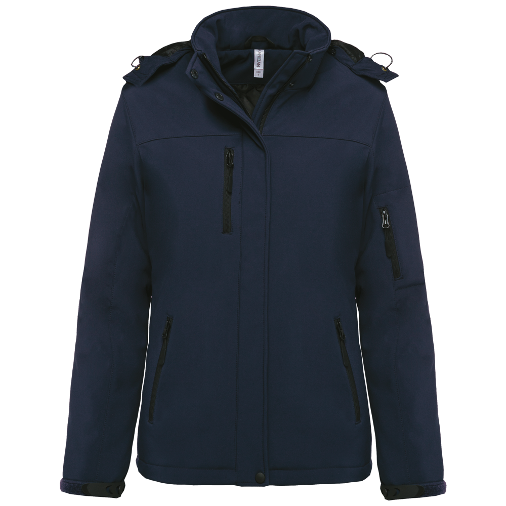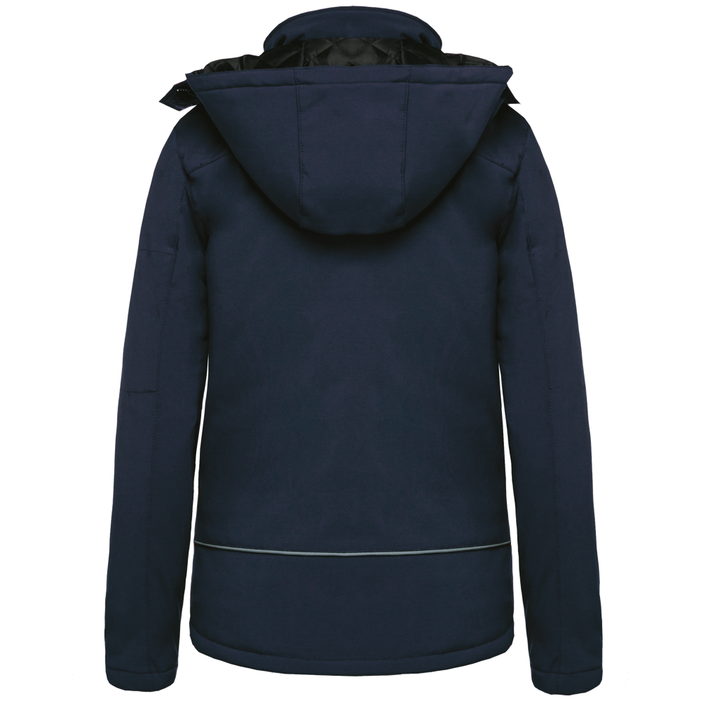 95% poliestere / 5% elastan. Tessuto incollato 3 strati traspirante 3.000 g/m² /24 h e impermeabile 8.000 mm. Esterno : 95% poliestere / 5% elastan. Strato intermedio : membrana traspirante. Strato interno : micropile. Fodera imbottita 100% poliestere. Lato anteriore: 4 tasche con zip (2 laterali, 1 sulla manica, 1 petto a destra). 2 tasche interne con automatico. Cappuccio staccabile 3 pannelli foderati e imbottiti, regolabile con stopper. Fondo manica regolabile con velcro. 1 zip lato cuore e 1 zip a fondo capo per apertura e personalizzazione.