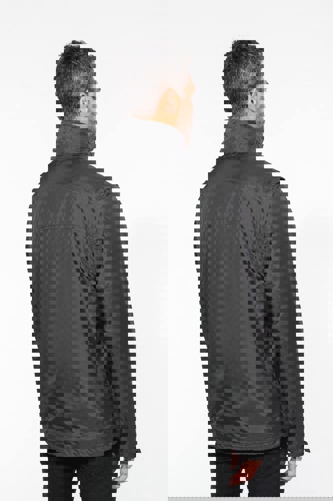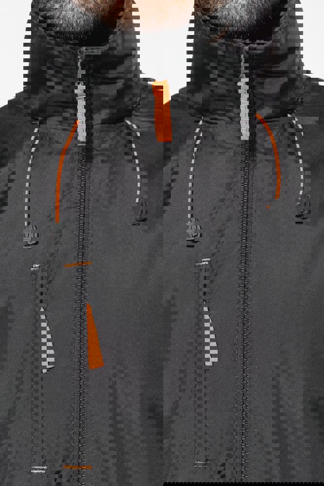 100% Poliestere con rivestimento in PVC. Fodera corpo in Pile 100% Poliestere. Fodera maniche 100% Poliestere e ovatta 100% Poliestere. Tessuto leggero. Chiusura con zip. 3 tasche con zip. Maniche staccabili con zip. Larghezza polsi regolabile. Rifiniture in contrasto. 3 tasche interne (2 con zip e una per il cellulare). Coulisse in vita. Cappuccio a scomparsa. Zip di accesso per facilitare la personalizzazione.