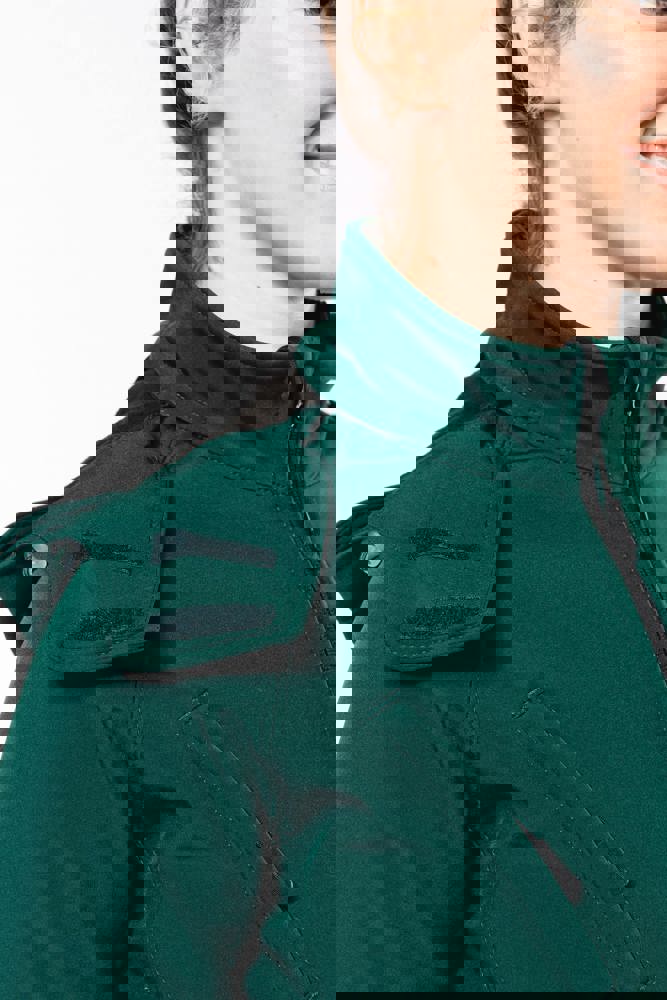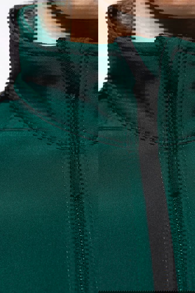 3 strati di tessuto differente, anti-sudorazione 1000 g/m² /24h e resistente all'acqua fino a 5000 mm. Strato esterno 95% Poliestere, 5%Elastan. Strato intermedio con membrana anti-sudorazione. Strato interno con fodera in Micropile. Maniche raglan. Zip sul davanti. 2 tasche anteriori con zip. 1 tasca sul petto a destra. Cappuccio staccabile con cordoncino. Polsini regolabili. Accesso zip invisibile sul petto per la decorazione interna.