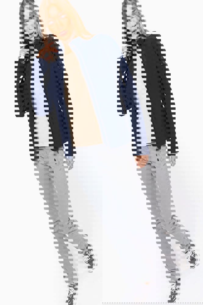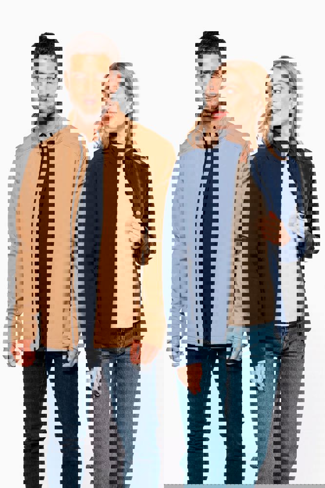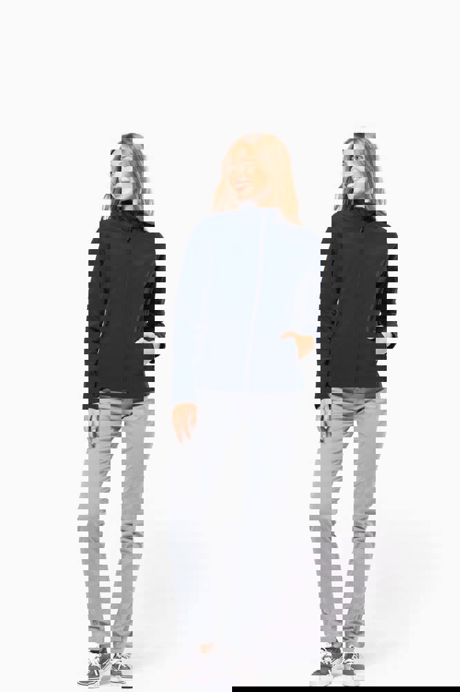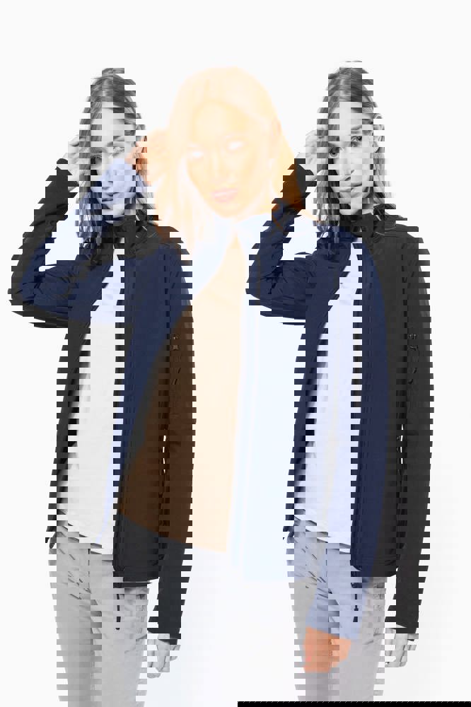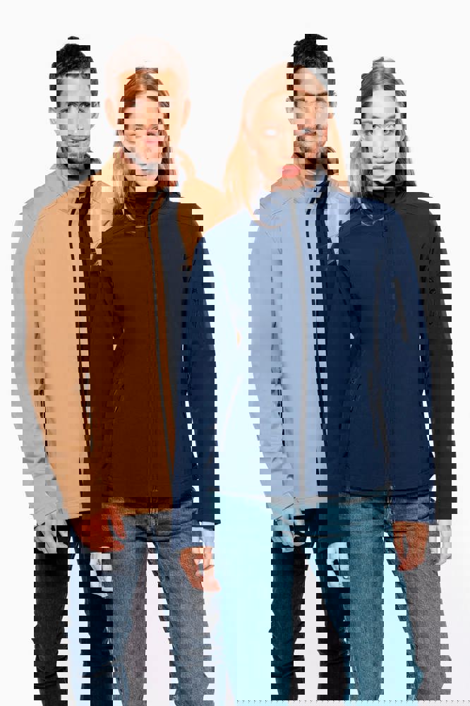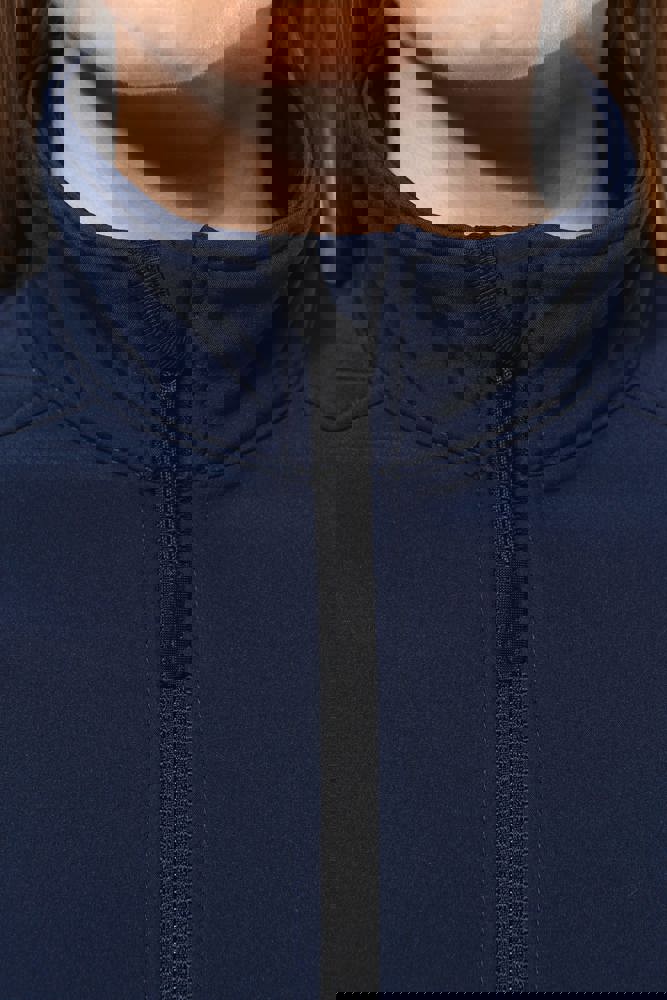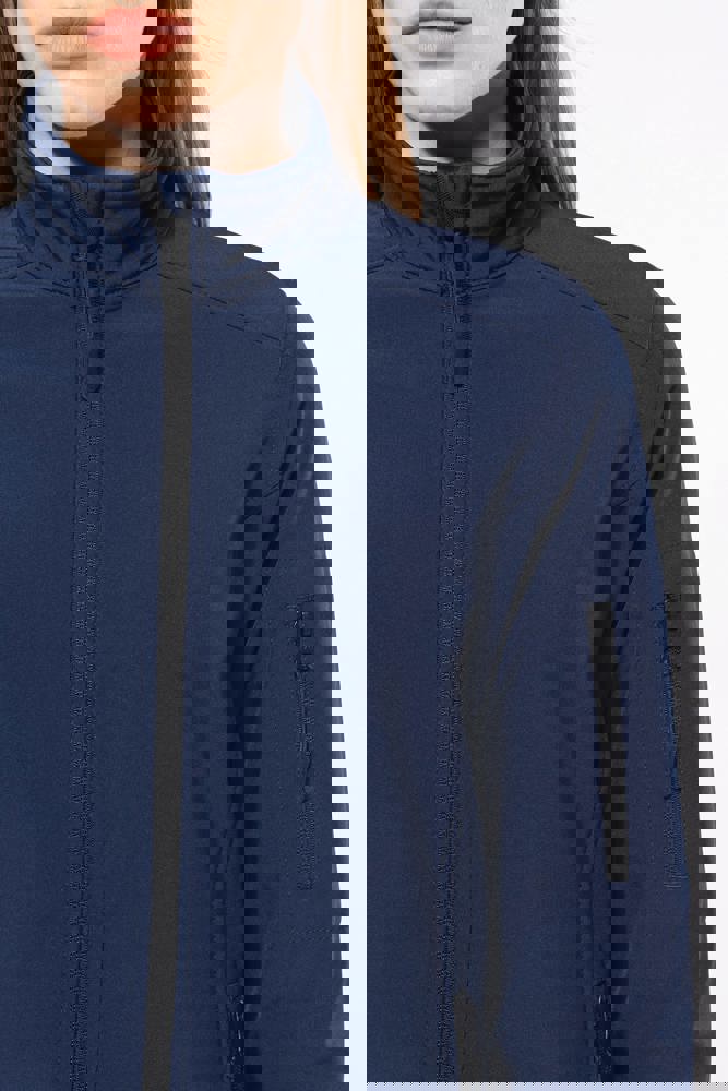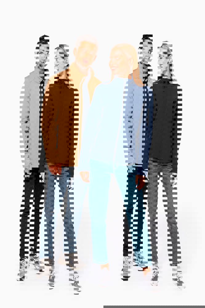 3 strati di tessuto differenti, anti-sudorazione 3000 g/m² /24h e impermeabili 8000 mm. Esterno: 95% poliestere / 5% elastan. Intermedio: Membrana anti-sudorazione. Interno: fodera in micropile. Chiusura con zip. 2 tasche con zip sul davanti. Tasca manica sinistra con zip.