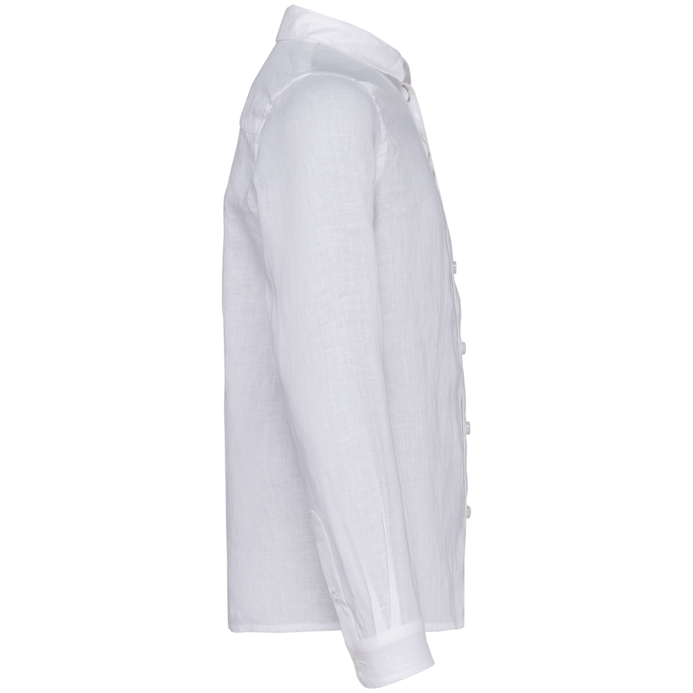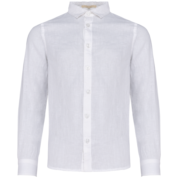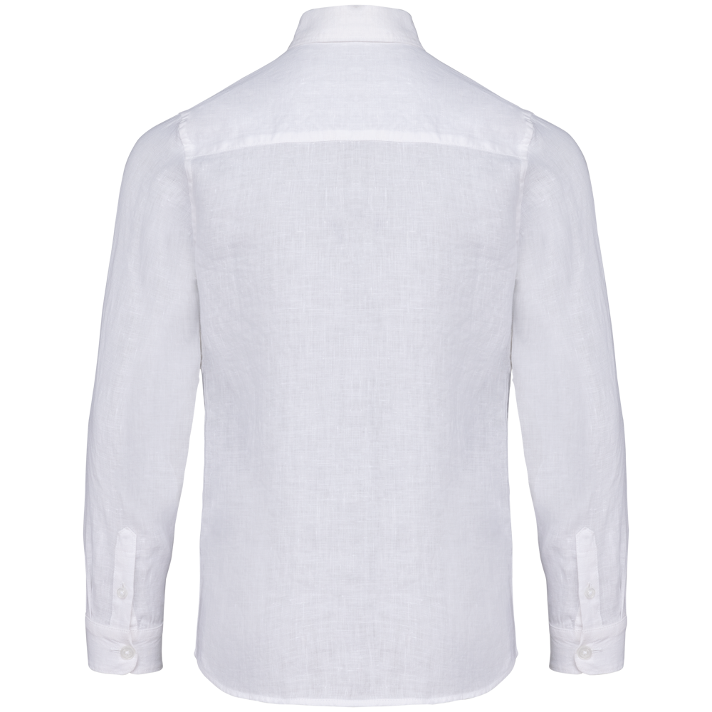100% lino. Tessuto. Taglio dritto. Cuciture laterali. Pattina riportata con bottoni in plastica riciclata effetto madreperlato. Nastrino all'interno del collo a motivo spigato. Doppio inserto sulla schiena. Pattina con bottoni arrotondati sui pugni parte inferiore delle maniche con doppia sovracucitura. Orlo a impuntura semplice a fondo capo. Capo lavato dopo il montaggio: i colori possono variare da un prodotto all'altro.