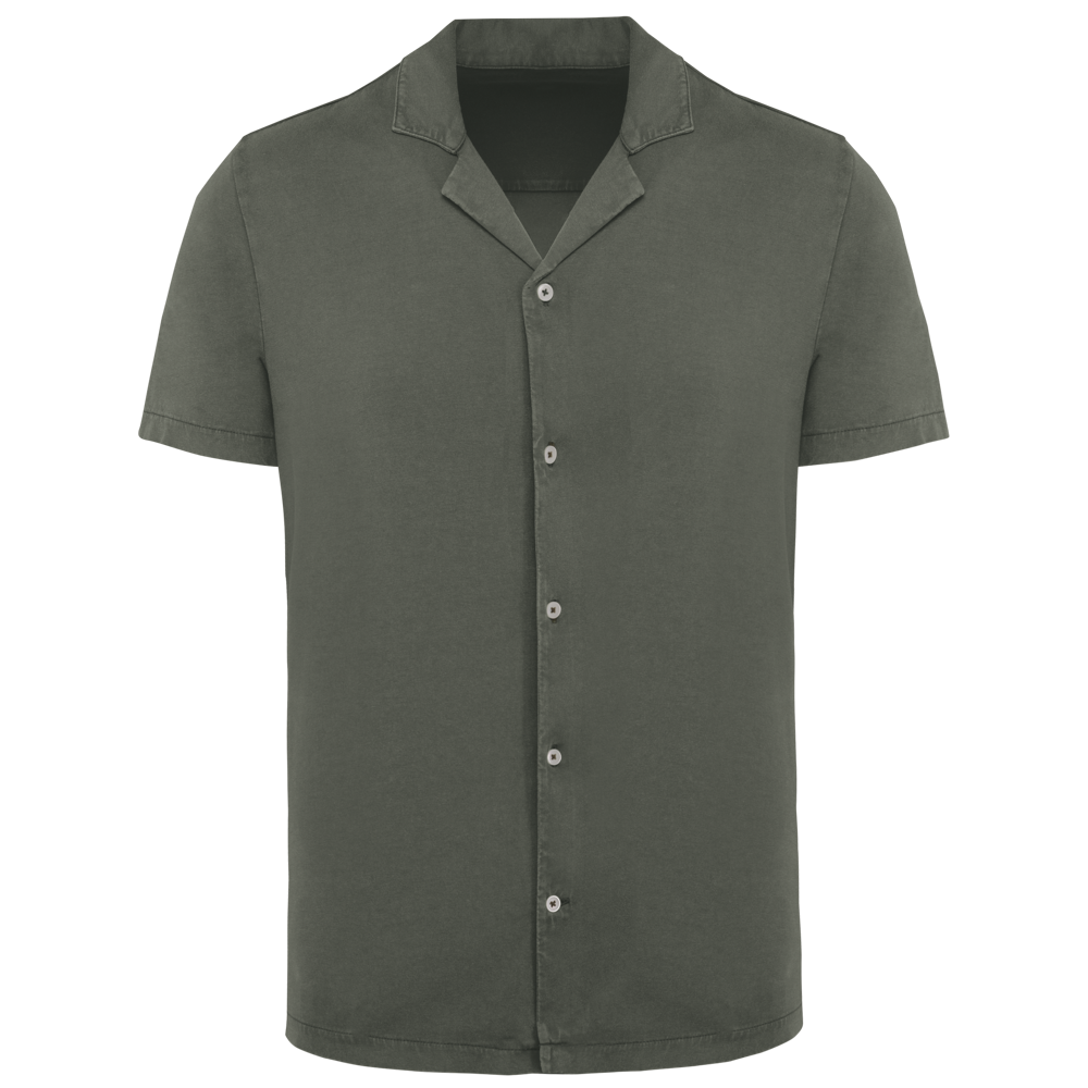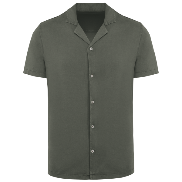 SP522 - Camicia uomo ecosostenibile slavata a maniche corte con collo bowling in jersey