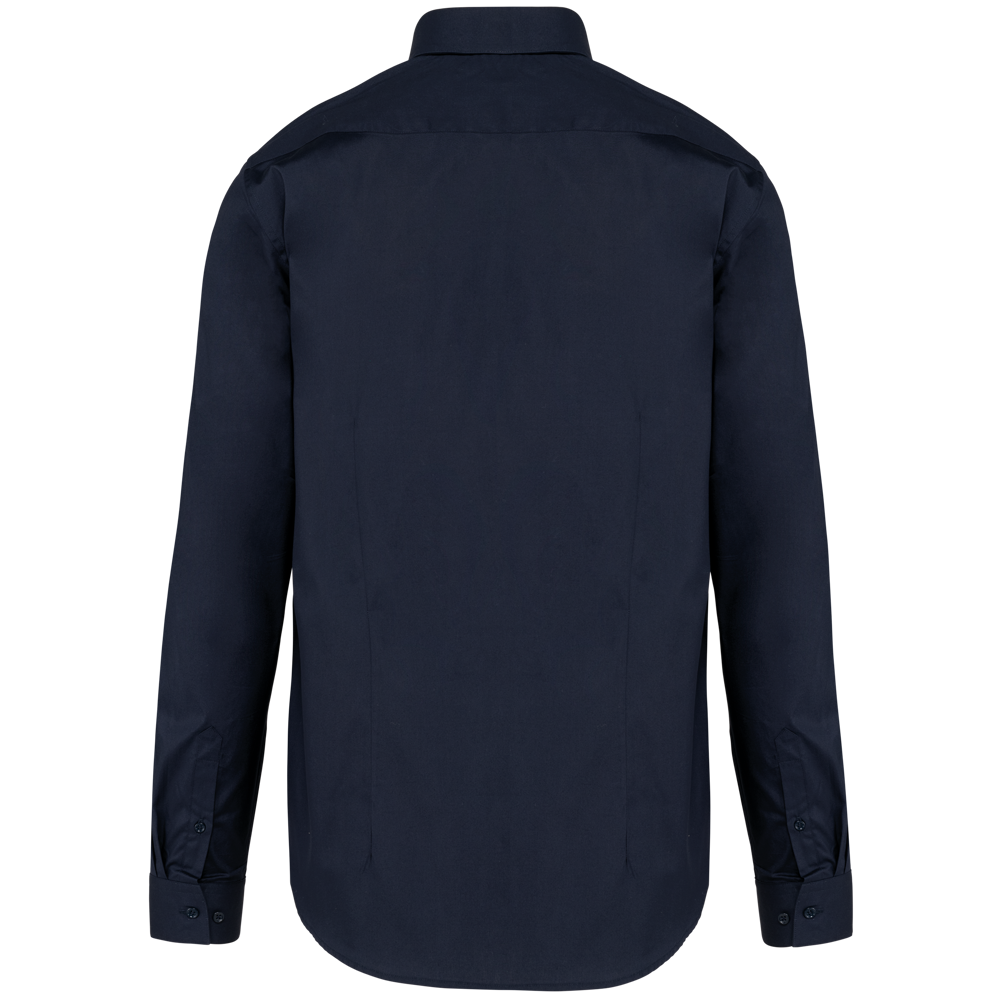 100% cotone. Tessuto twill. Facile da lavare (trattamento Easy Care). Filo a doppio ritorto 80 x 2 di qualità superiore. Inserto sulla parte superiore della schiena. Pattina invisibile. Bottoni in madreperla. Polsini ad angolo arrotondato con 2 bottoni. Nessuna etichetta con il nome del marchio; solo un'etichetta con l'indicazione della taglia per semplificare la personalizzazione.