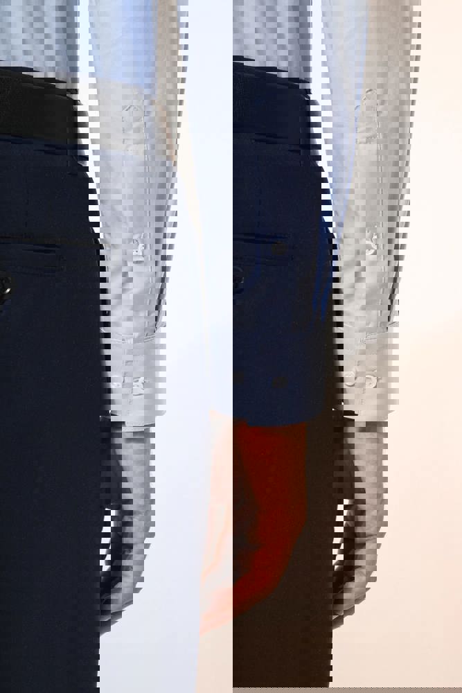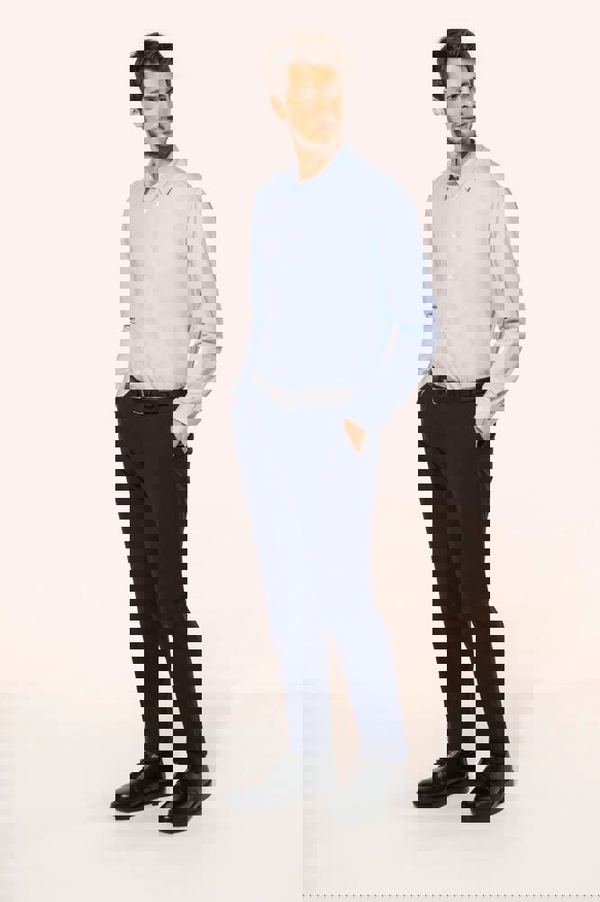 100% cotone. Cotone pettinato. Tessuto popeline. Collo alla francese con stecche rimovibili. Bottoni in madreperla. Inserto sulla parte superiore della schiena. Polsini ad angolo retto con 2 bottoni. Fianchi a coda di rondine. Nessuna etichetta con il nome del marchio; solo un'etichetta con l'indicazione della taglia per semplificare la personalizzazione.