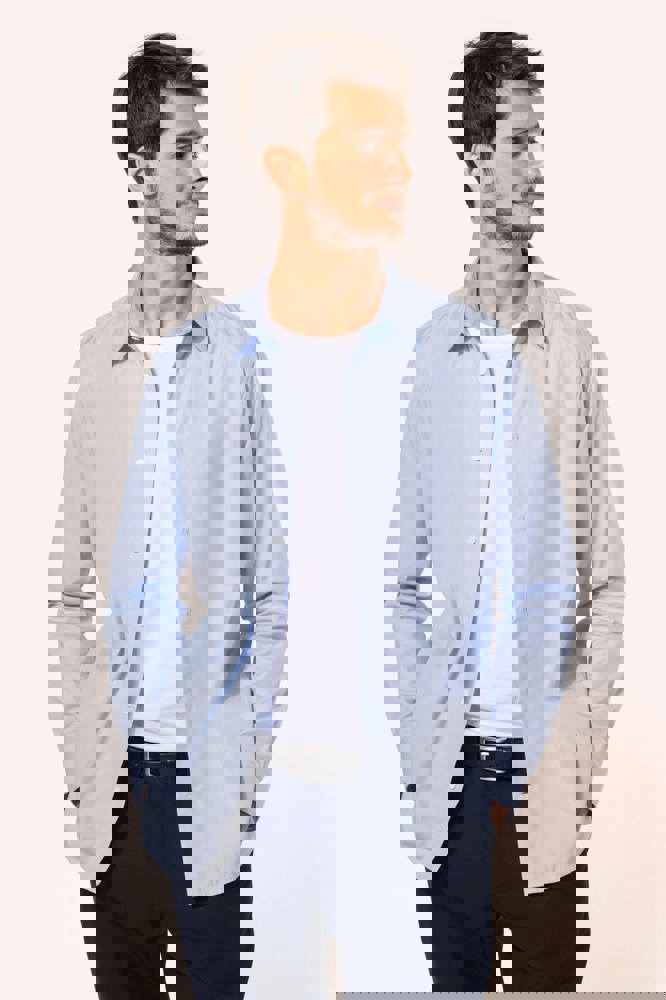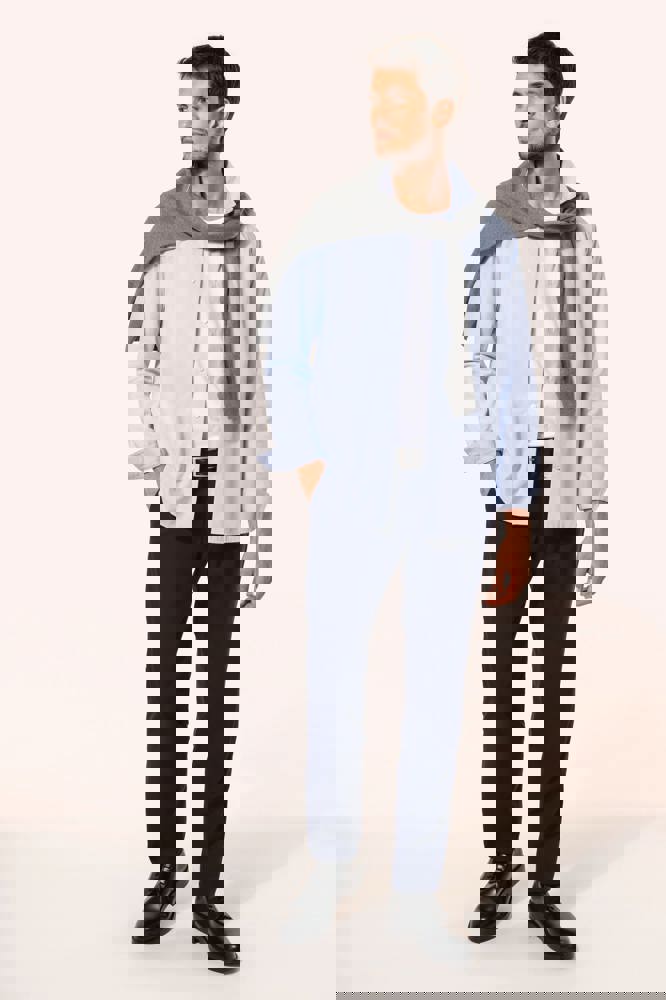 100% cotone. Cotone pettinato. Tessuto popeline. Collo alla francese con stecche rimovibili.... more