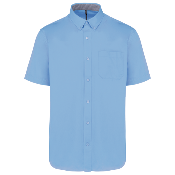 100% cotone. Tessuto pettinato effetto manopesca. Taglio regolare. Collo button down. Bottoni tono su tono. Taschino sul petto lato cuore. Interno listino collo a contrasto in colore Oxford silver. Parte posteriore con 2 pieghe comfort e inserto foderato. Finitura con cuciture ribattute. Bottone di riserva.
