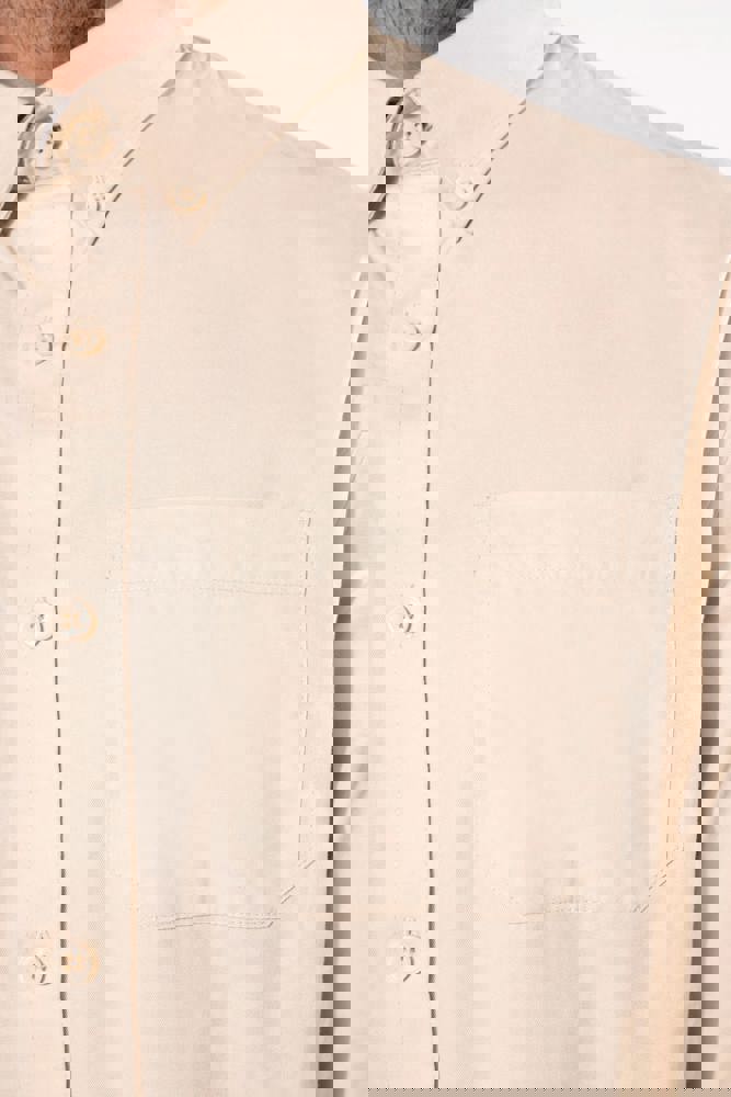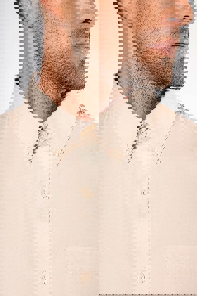 100% cotone. Tessuto pettinato effetto manopesca. Collo button down. Bottoni tono su tono.... more