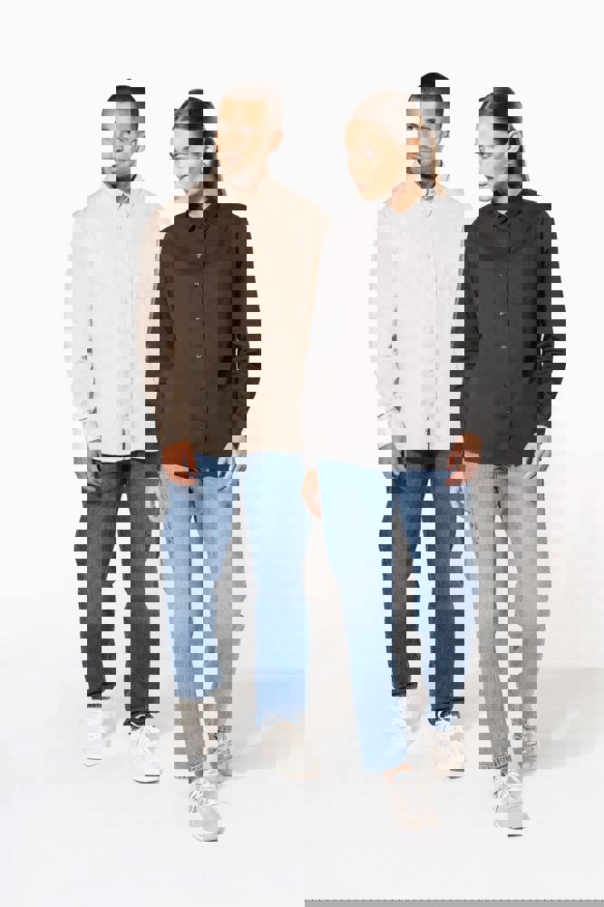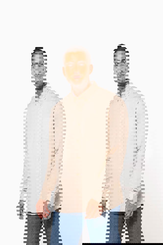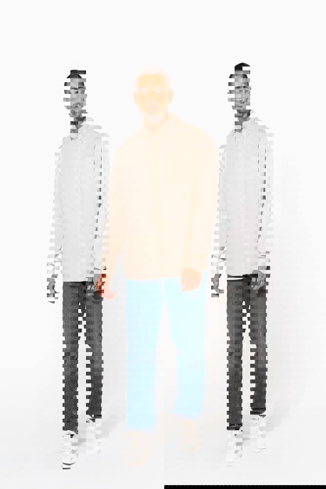 100% cotone. Tessuto pettinato effetto manopesca. Collo button down. Bottoni tono su tono. Taschino sul petto lato cuore. Interno listino collo e polsini a contrasto in colore Oxford silver. Parte posteriore con 2 pieghe comfort e inserto foderato. Finitura con cuciture ribattute. Polsino regolabile con pattina con bottone. Bottone di riserva.