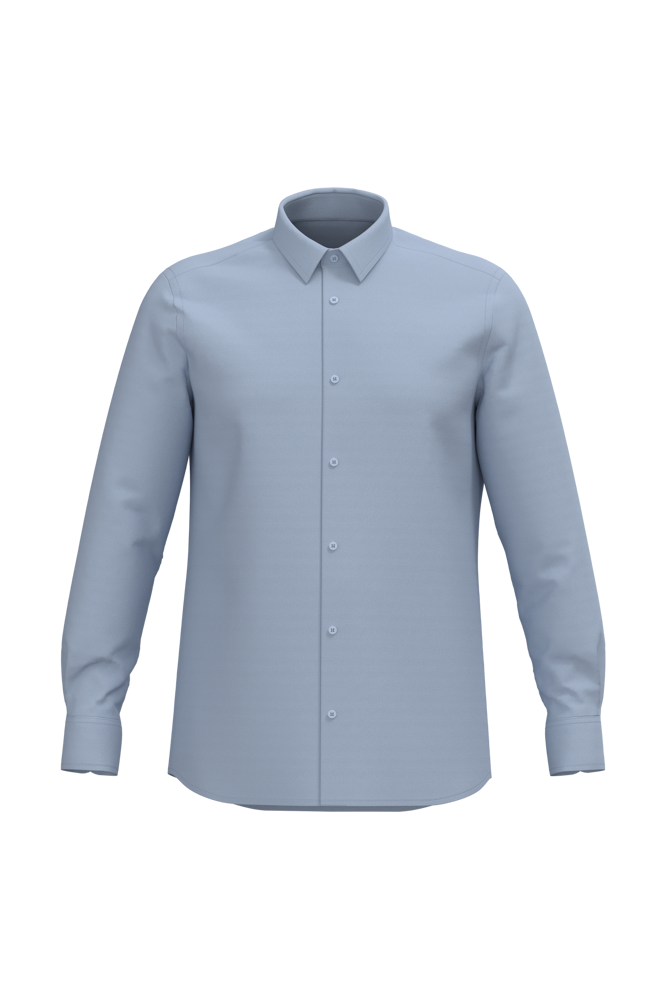 70% cotone / 30% poliestere. Tessuto oxford. Taglio dritto. Facile da lavare (trattamento Easy-care). Colletto con stecche. Pattina con bottoni tono su tono in plastica. Inserto sulla parte superiore della schiena. Polsi regolabili a due bottoni con angoli arrotondati e pattina con bottoni. Fondo capo arrotondato e finitura con orlo a impuntura semplice. Nessuna etichetta con il nome della marca sul collo; solo una piccola etichetta con l'indicazione della taglia per semplificare la personalizzazione.
