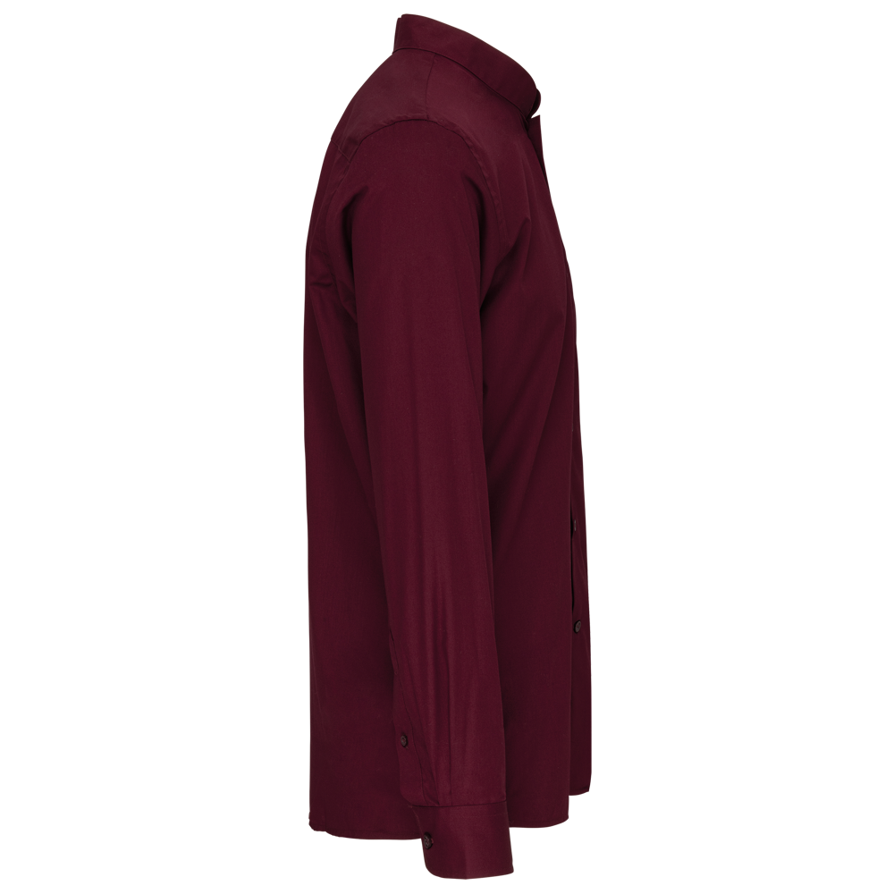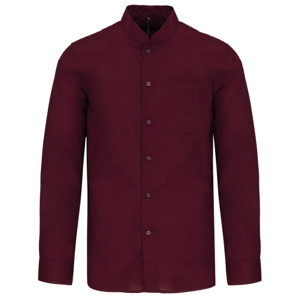 65% poliestere / 35% popeline di cotone. Tessuto facile da stirare. Collo alla coreana. Bottoni colorati. Taschino sul petto a sinistra. Polsini arrotondati regolabili con abbottonatura antistrappo. 2 bottoni di riserva.