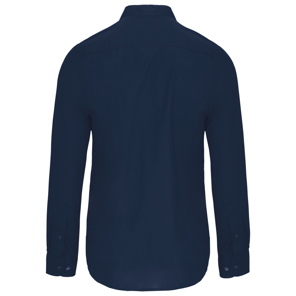 65% poliestere / 35% popeline di cotone. Tessuto facile da stirare. Collo alla coreana. Bottoni colorati. Taschino sul petto a sinistra. Polsini arrotondati regolabili con abbottonatura antistrappo. 2 bottoni di riserva.