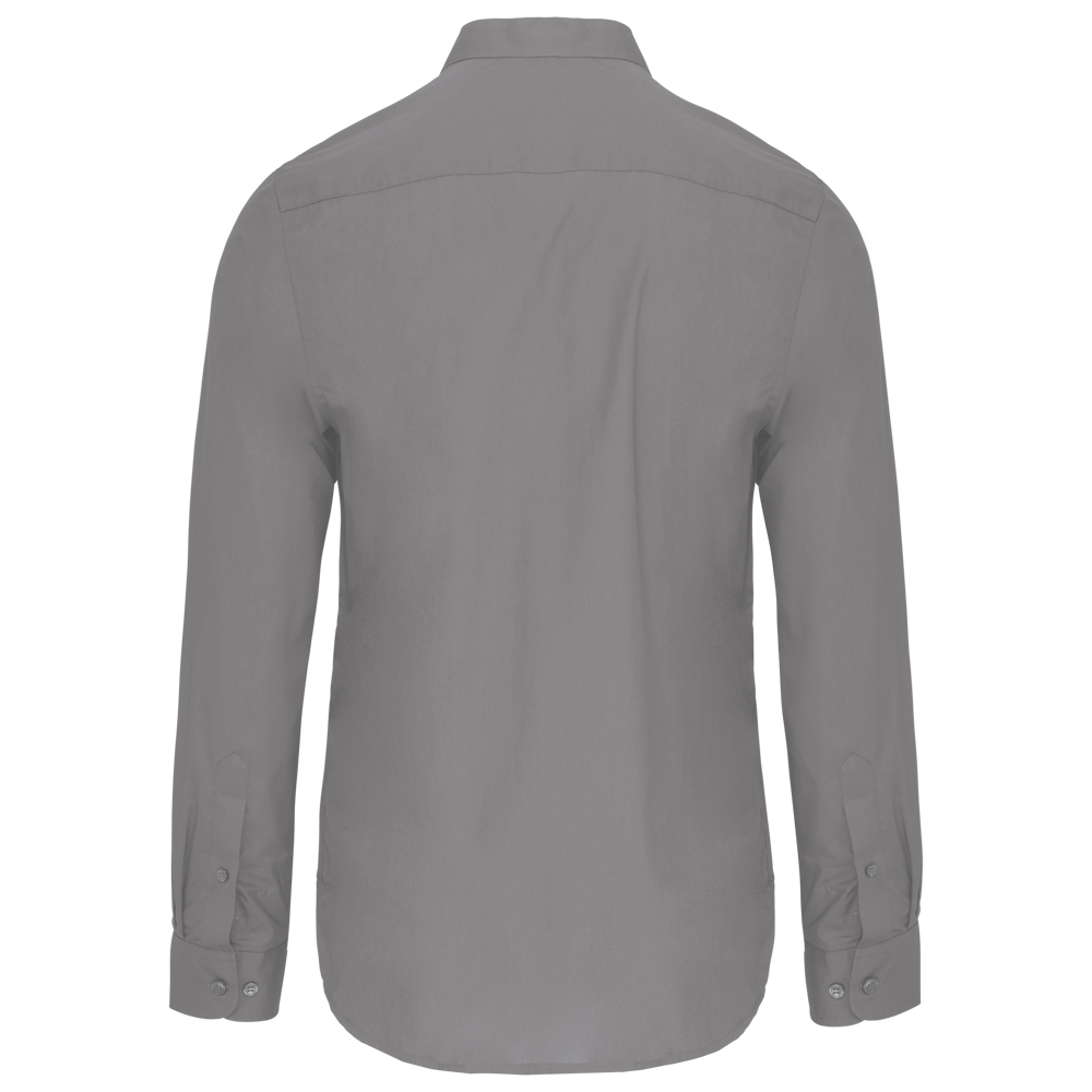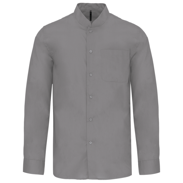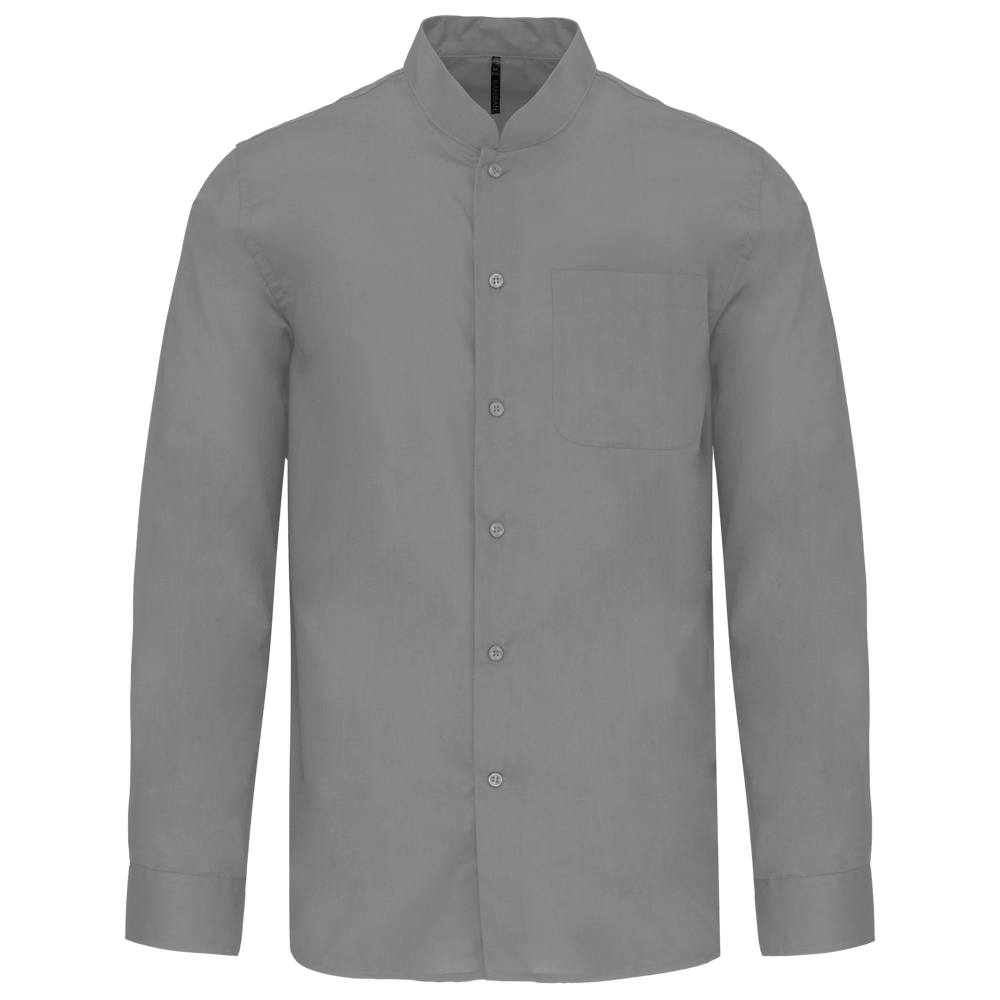 65% poliestere / 35% popeline di cotone. Tessuto facile da stirare. Collo alla coreana. Bottoni colorati. Taschino sul petto a sinistra. Polsini arrotondati regolabili con abbottonatura antistrappo. 2 bottoni di riserva.