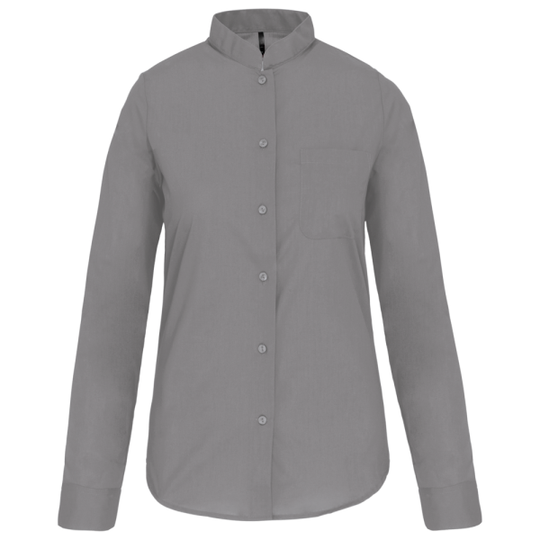 65% Poliestere / 35% Popeline di Cotone. Tessuto facile da stirare. Collo alla coreana. Bottoni colorati. Taschino sul petto a sinistra. Polsini arrotondati regolabili con abbottonatura antistrappo. 1 bottone di riserva. Fondo sagomato.