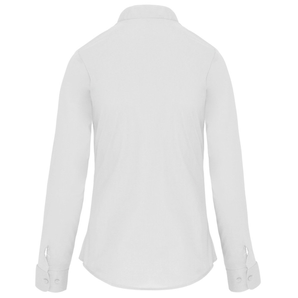 65% Poliestere / 35% Popeline di Cotone. Tessuto facile da stirare. Collo alla coreana. Bottoni colorati. Taschino sul petto a sinistra. Polsini arrotondati regolabili con abbottonatura antistrappo. 1 bottone di riserva. Fondo sagomato.