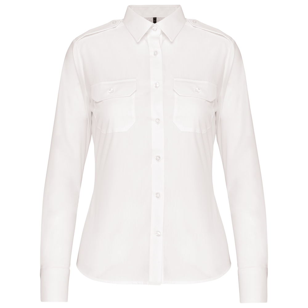 65% poliestere / 35% popeline di cotone. Facile da lavare (trattamento Easy Care). Bottoni tono su tono. 2 tasche sul petto con patta, di cui una con porta-penna lato cuore. Pattina sulle spalle per applicazione gradi (gradi non inclusi). Polsini regolabili con bottoni.